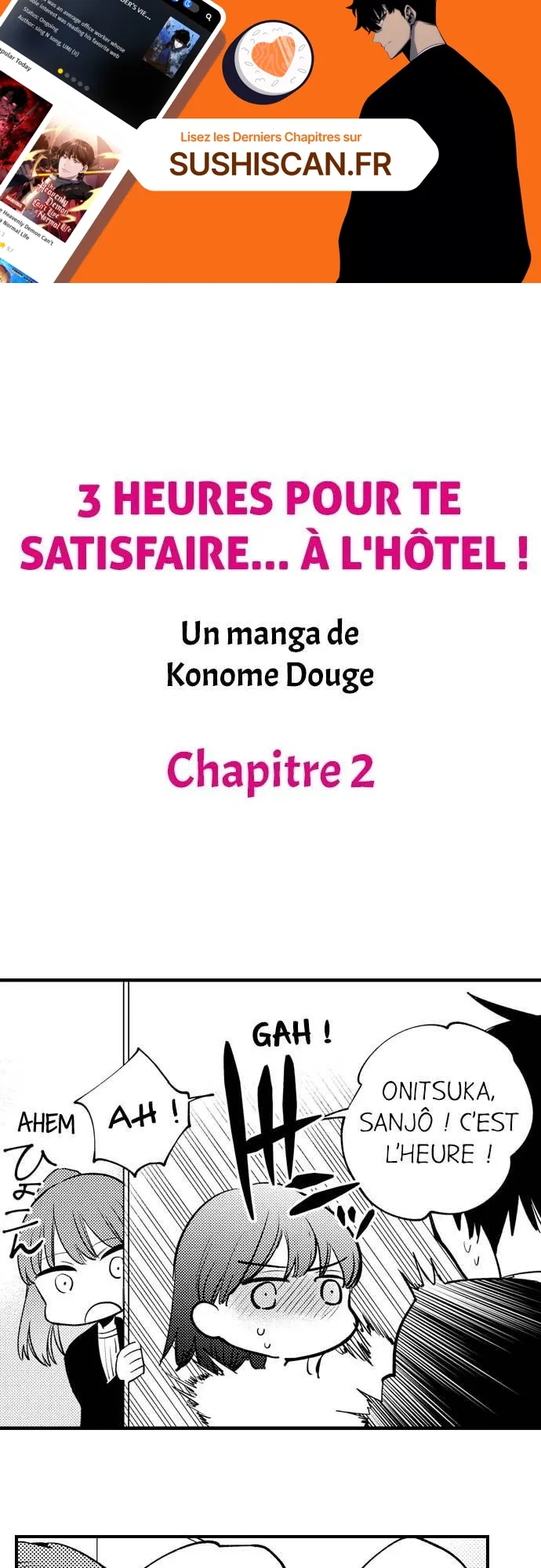 Lisez le dernier manga 3 heures pour te satisfaire… À l’hôtel ! Chapitre 2 sur SushiScan. Le manga 3 heures pour te satisfaire… À l’hôtel ! est toujours mis à jour sur SushiScan. N'oubliez pas de lire les autres mises à jour de manga. Une liste de collections de manga SushiScan se trouve dans le menu Liste de manga.
