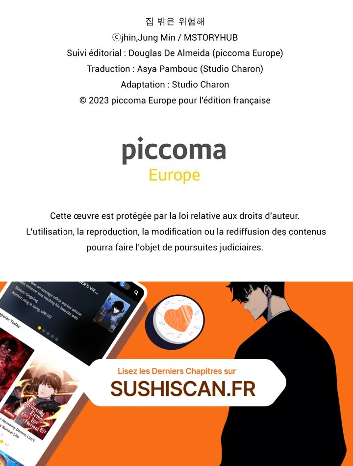 Lisez le dernier manga C’est dangereux dehors ! Chapitre 45 sur SushiScan. Le manga C’est dangereux dehors ! est toujours mis à jour sur SushiScan. N'oubliez pas de lire les autres mises à jour de manga. Une liste de collections de manga SushiScan se trouve dans le menu Liste de manga.