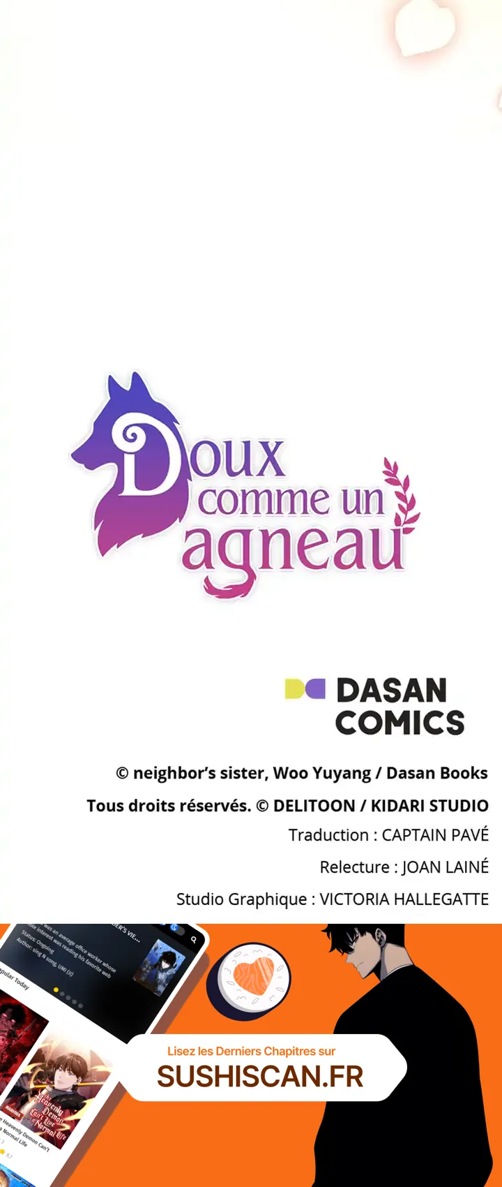 Lisez le dernier manga Doux comme un agneau Chapitre 87 sur SushiScan. Le manga Doux comme un agneau est toujours mis à jour sur SushiScan. N'oubliez pas de lire les autres mises à jour de manga. Une liste de collections de manga SushiScan se trouve dans le menu Liste de manga.