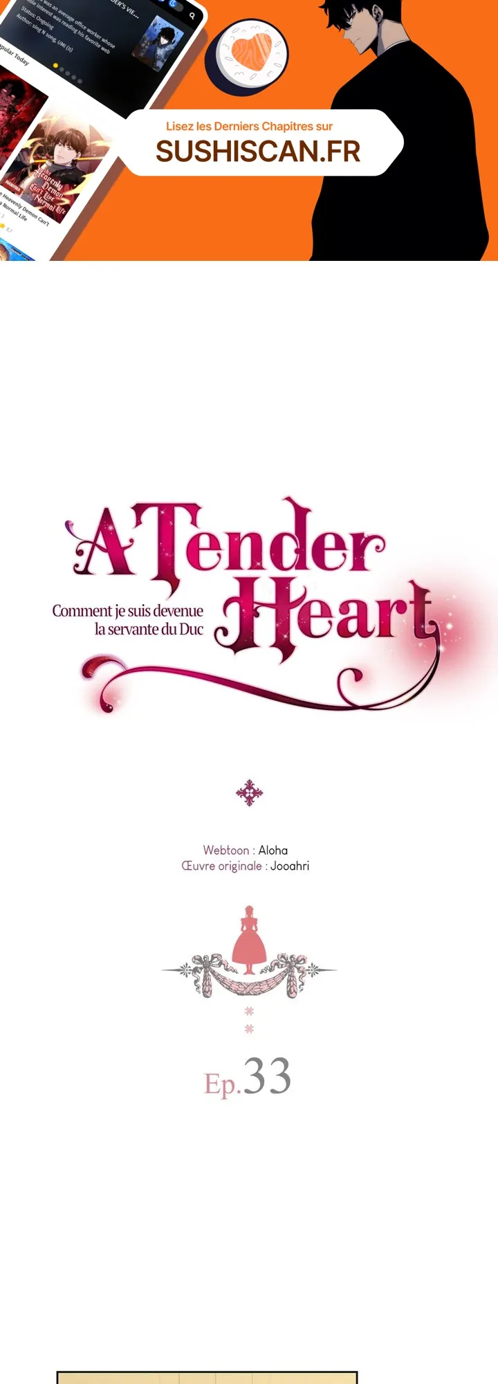 Lisez le dernier manga A tender Heart – Comment je suis devenue la servante du Duc Chapitre 33 sur SushiScan. Le manga A tender Heart – Comment je suis devenue la servante du Duc est toujours mis à jour sur SushiScan. N'oubliez pas de lire les autres mises à jour de manga. Une liste de collections de manga SushiScan se trouve dans le menu Liste de manga.