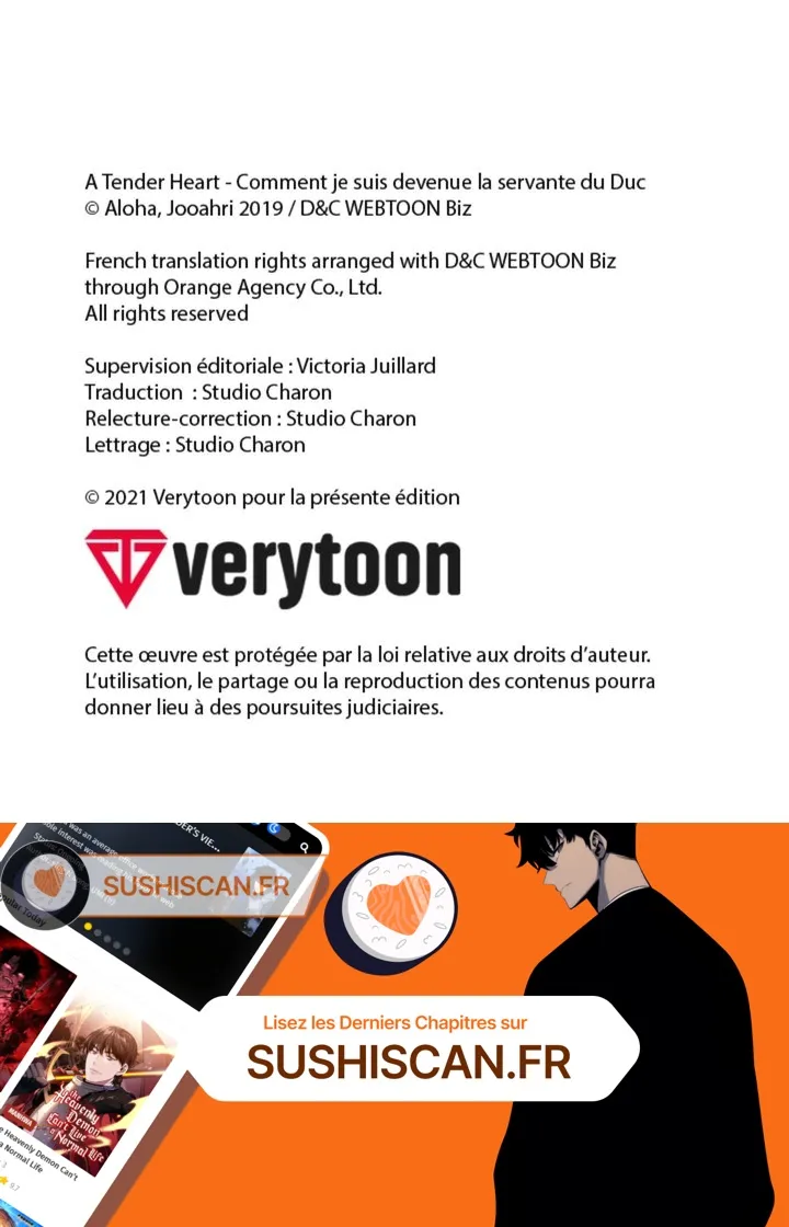 Lisez le dernier manga A tender Heart – Comment je suis devenue la servante du Duc Chapitre 47 sur SushiScan. Le manga A tender Heart – Comment je suis devenue la servante du Duc est toujours mis à jour sur SushiScan. N'oubliez pas de lire les autres mises à jour de manga. Une liste de collections de manga SushiScan se trouve dans le menu Liste de manga.