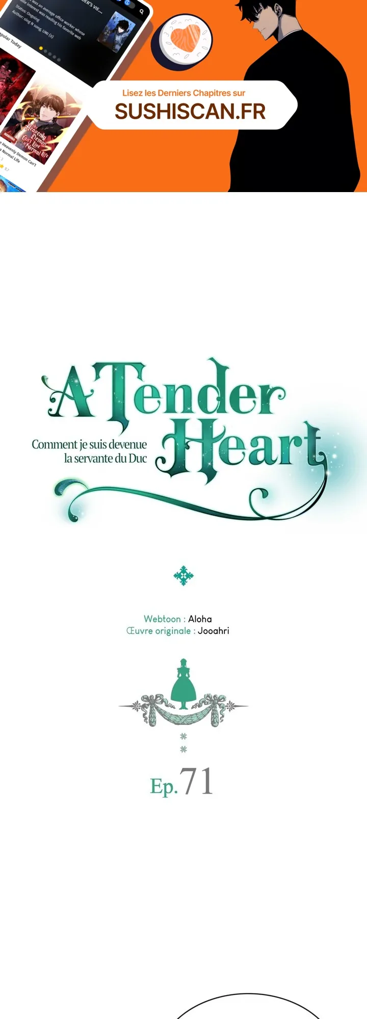 Lisez le dernier manga A tender Heart – Comment je suis devenue la servante du Duc Chapitre 71 sur SushiScan. Le manga A tender Heart – Comment je suis devenue la servante du Duc est toujours mis à jour sur SushiScan. N'oubliez pas de lire les autres mises à jour de manga. Une liste de collections de manga SushiScan se trouve dans le menu Liste de manga.