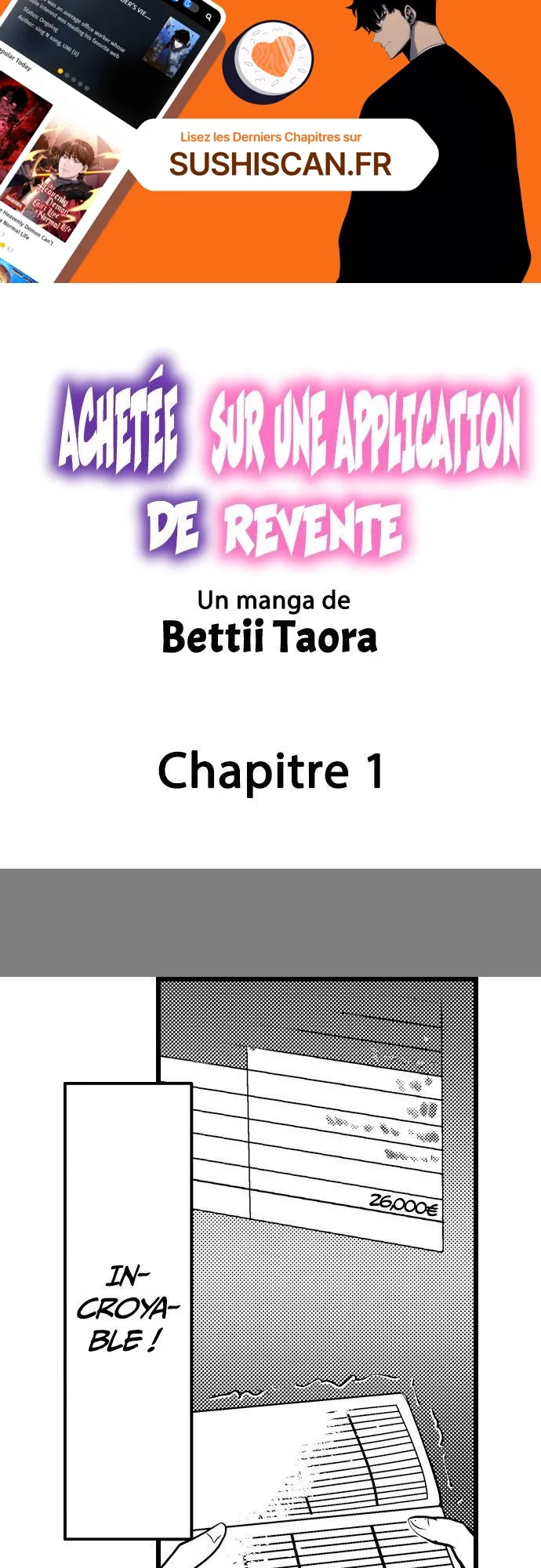 Lisez le dernier manga Achetée sur une application de revente Chapitre 1 sur SushiScan. Le manga Achetée sur une application de revente est toujours mis à jour sur SushiScan. N'oubliez pas de lire les autres mises à jour de manga. Une liste de collections de manga SushiScan se trouve dans le menu Liste de manga.