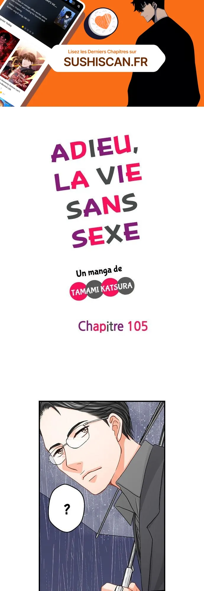 Lisez le dernier manga Adieu, la vie sans sexe Chapitre 105 sur SushiScan. Le manga Adieu, la vie sans sexe est toujours mis à jour sur SushiScan. N'oubliez pas de lire les autres mises à jour de manga. Une liste de collections de manga SushiScan se trouve dans le menu Liste de manga.