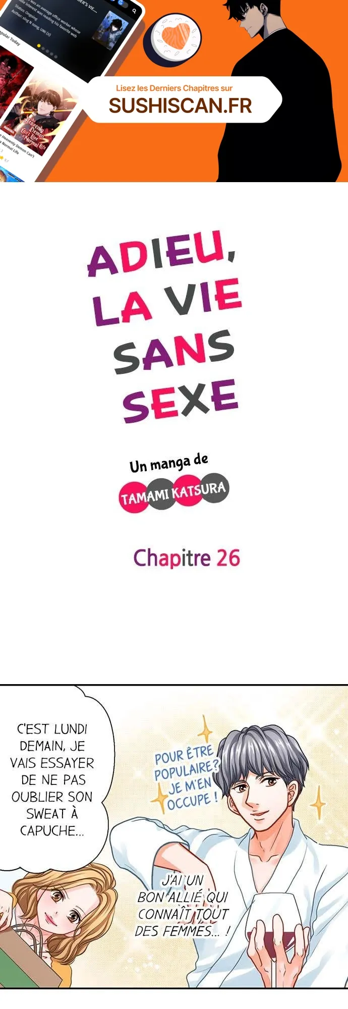 Lisez le dernier manga Adieu, la vie sans sexe Chapitre 26 sur SushiScan. Le manga Adieu, la vie sans sexe est toujours mis à jour sur SushiScan. N'oubliez pas de lire les autres mises à jour de manga. Une liste de collections de manga SushiScan se trouve dans le menu Liste de manga.