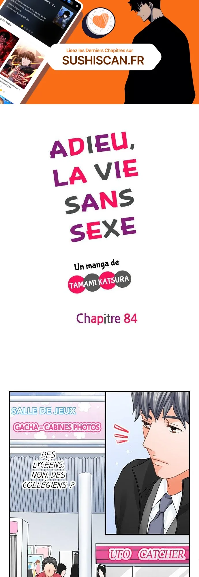 Lisez le dernier manga Adieu, la vie sans sexe Chapitre 84 sur SushiScan. Le manga Adieu, la vie sans sexe est toujours mis à jour sur SushiScan. N'oubliez pas de lire les autres mises à jour de manga. Une liste de collections de manga SushiScan se trouve dans le menu Liste de manga.