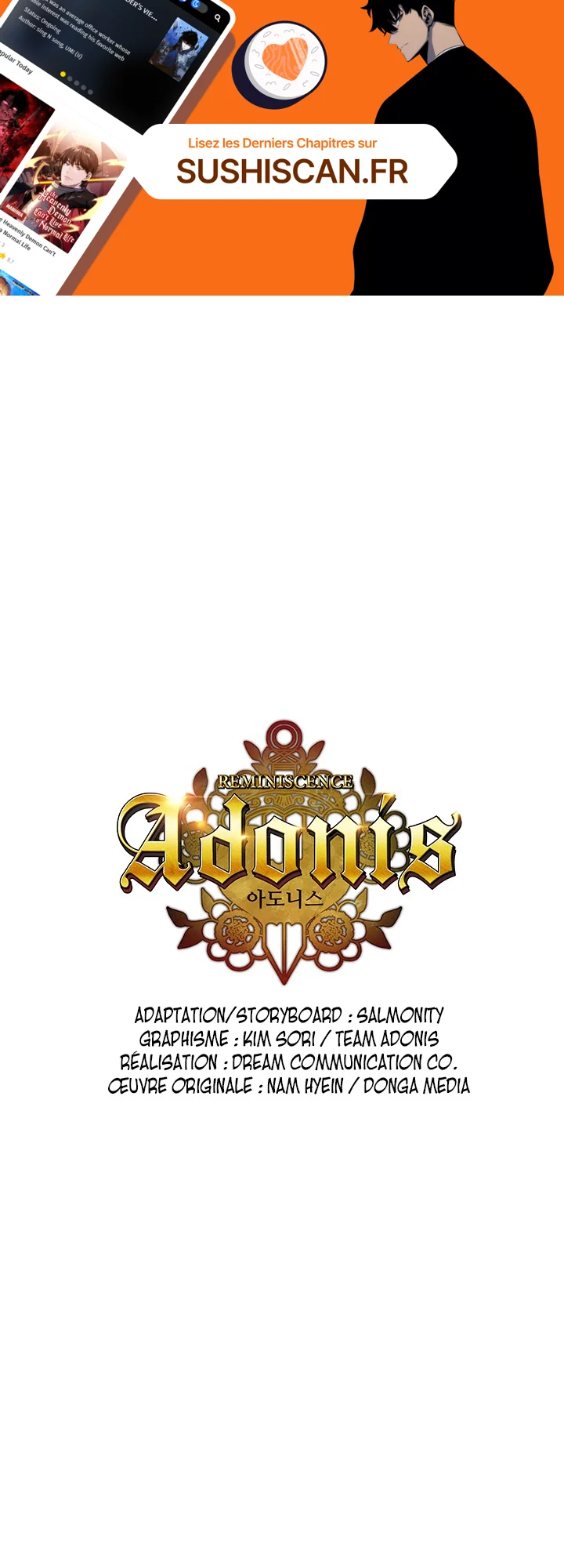 Lisez le dernier manga Adonis Chapitre 100 VF sur SushiScan. Le manga Adonis est toujours mis à jour sur SushiScan. N'oubliez pas de lire les autres mises à jour de manga. Une liste de collections de manga SushiScan se trouve dans le menu Liste de manga.