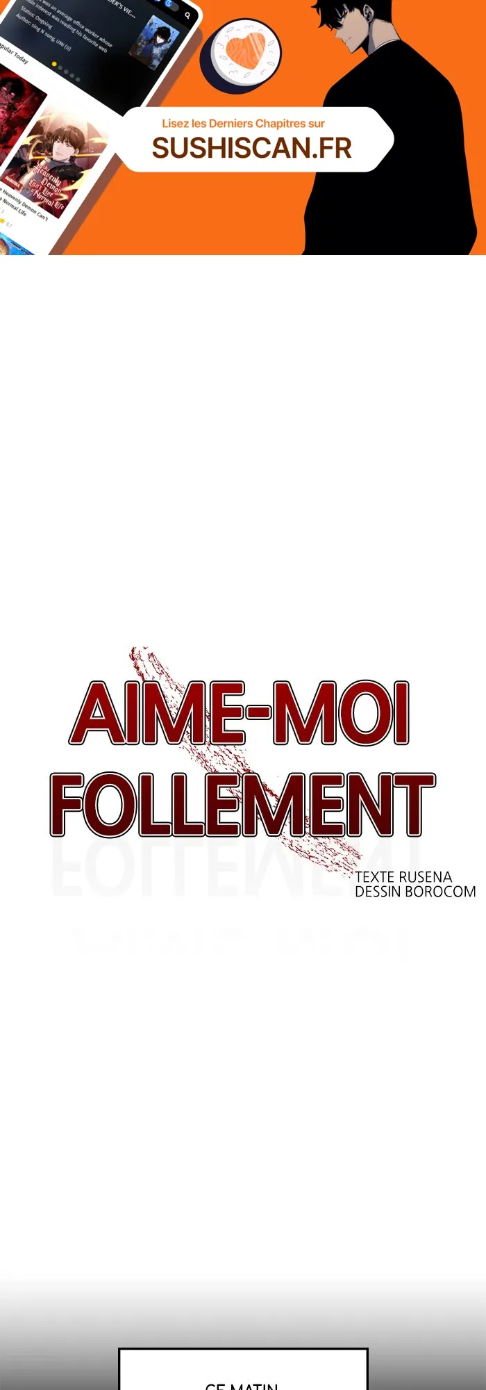 Lisez le dernier manga Aime-moi follement Chapitre 2 sur SushiScan. Le manga Aime-moi follement est toujours mis à jour sur SushiScan. N'oubliez pas de lire les autres mises à jour de manga. Une liste de collections de manga SushiScan se trouve dans le menu Liste de manga.