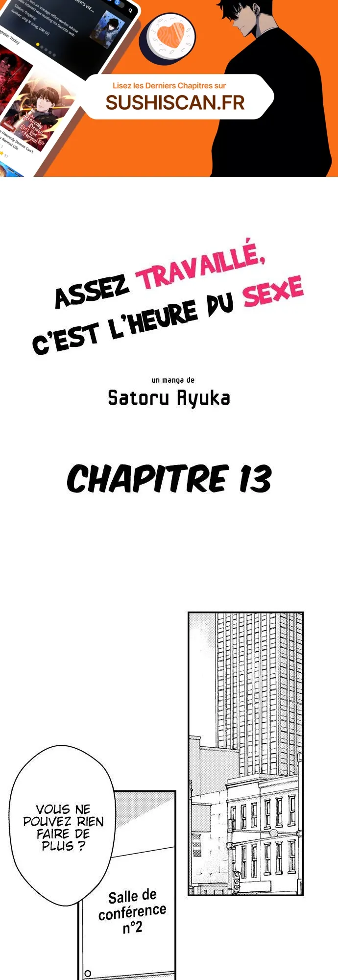 Lisez le dernier manga Assez travaillé, c’est l’heure du sexe Chapitre 13 sur SushiScan. Le manga Assez travaillé, c’est l’heure du sexe est toujours mis à jour sur SushiScan. N'oubliez pas de lire les autres mises à jour de manga. Une liste de collections de manga SushiScan se trouve dans le menu Liste de manga.