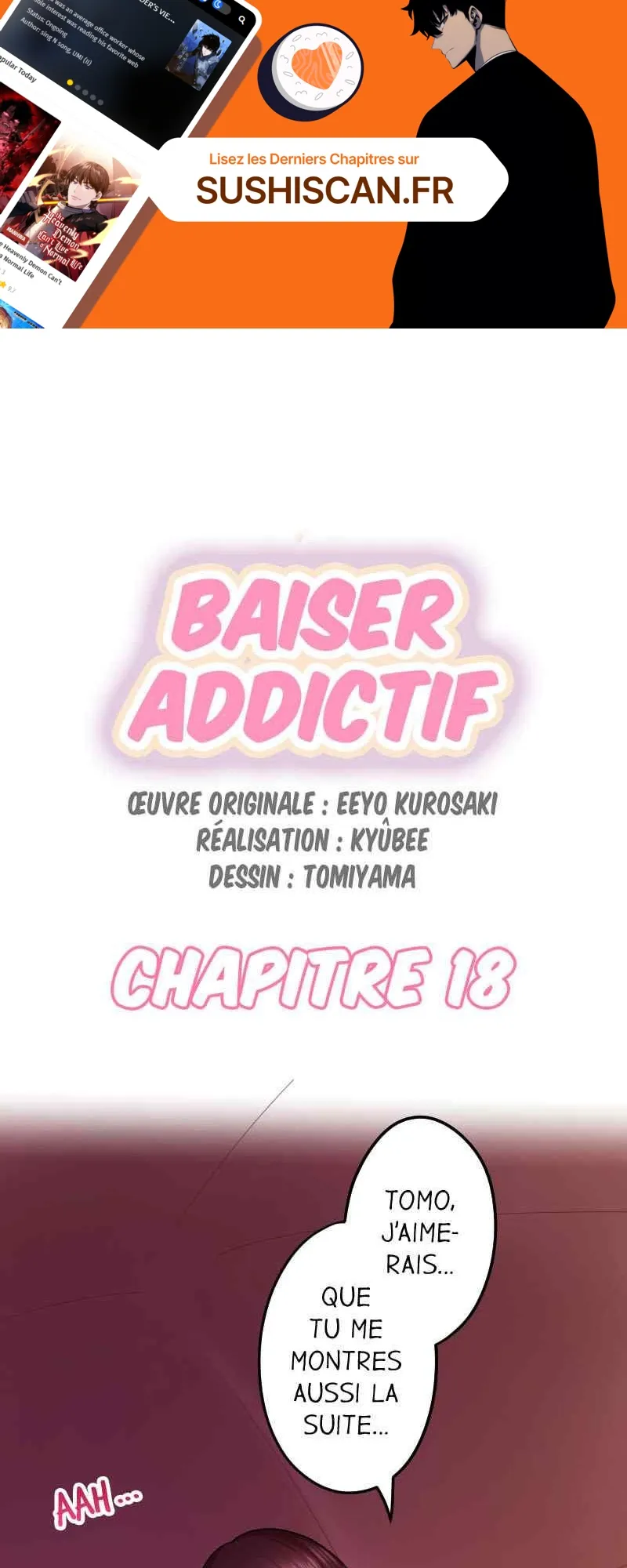 Lisez le dernier manga Baiser addictif Chapitre 18 sur SushiScan. Le manga Baiser addictif est toujours mis à jour sur SushiScan. N'oubliez pas de lire les autres mises à jour de manga. Une liste de collections de manga SushiScan se trouve dans le menu Liste de manga.