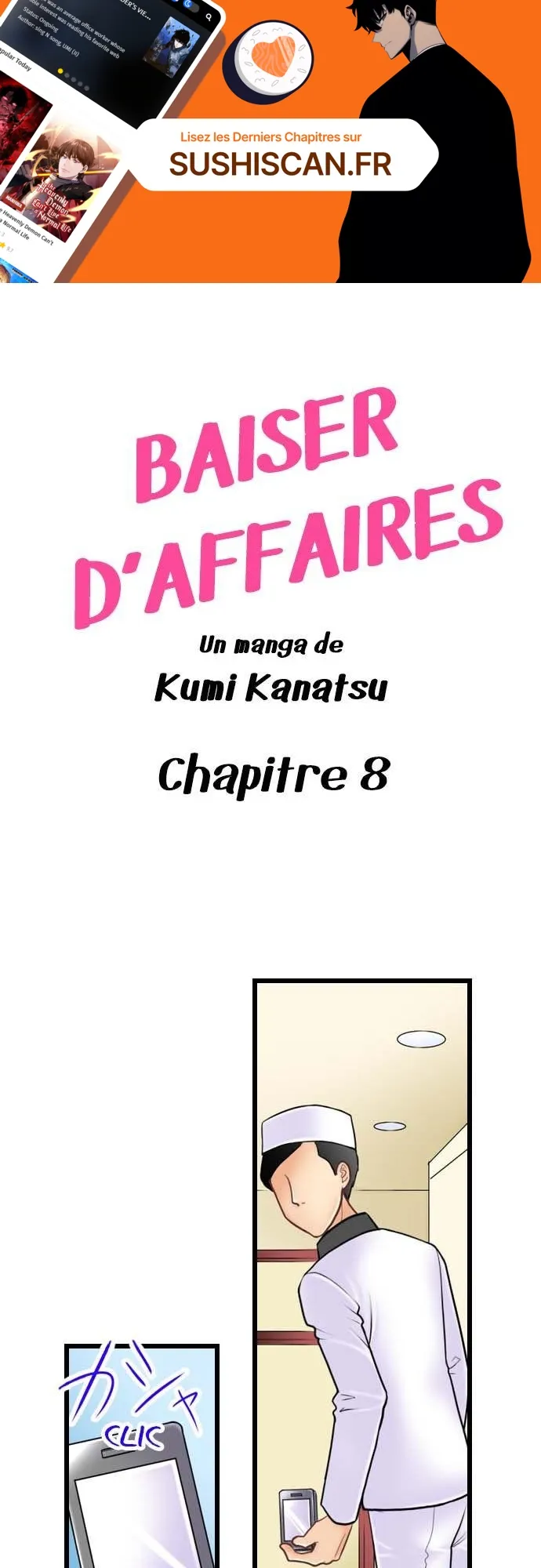 Lisez le dernier manga Baiser d’affaires Chapitre 8 sur SushiScan. Le manga Baiser d’affaires est toujours mis à jour sur SushiScan. N'oubliez pas de lire les autres mises à jour de manga. Une liste de collections de manga SushiScan se trouve dans le menu Liste de manga.
