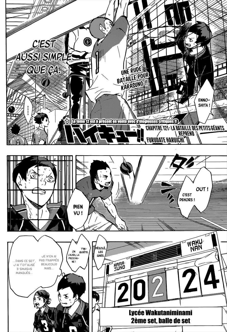 Lisez le dernier manga Haikyu Chapitre 121 VF sur SushiScan. Le manga Haikyu est toujours mis à jour sur SushiScan. N'oubliez pas de lire les autres mises à jour de manga. Une liste de collections de manga SushiScan se trouve dans le menu Liste de manga.