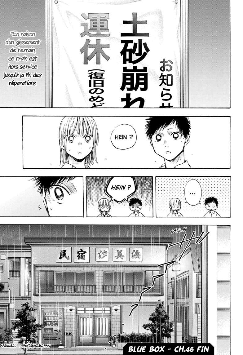 Lisez le dernier manga Blue Box Chapitre 46 VF sur SushiScan. Le manga Blue Box est toujours mis à jour sur SushiScan. N'oubliez pas de lire les autres mises à jour de manga. Une liste de collections de manga SushiScan se trouve dans le menu Liste de manga.