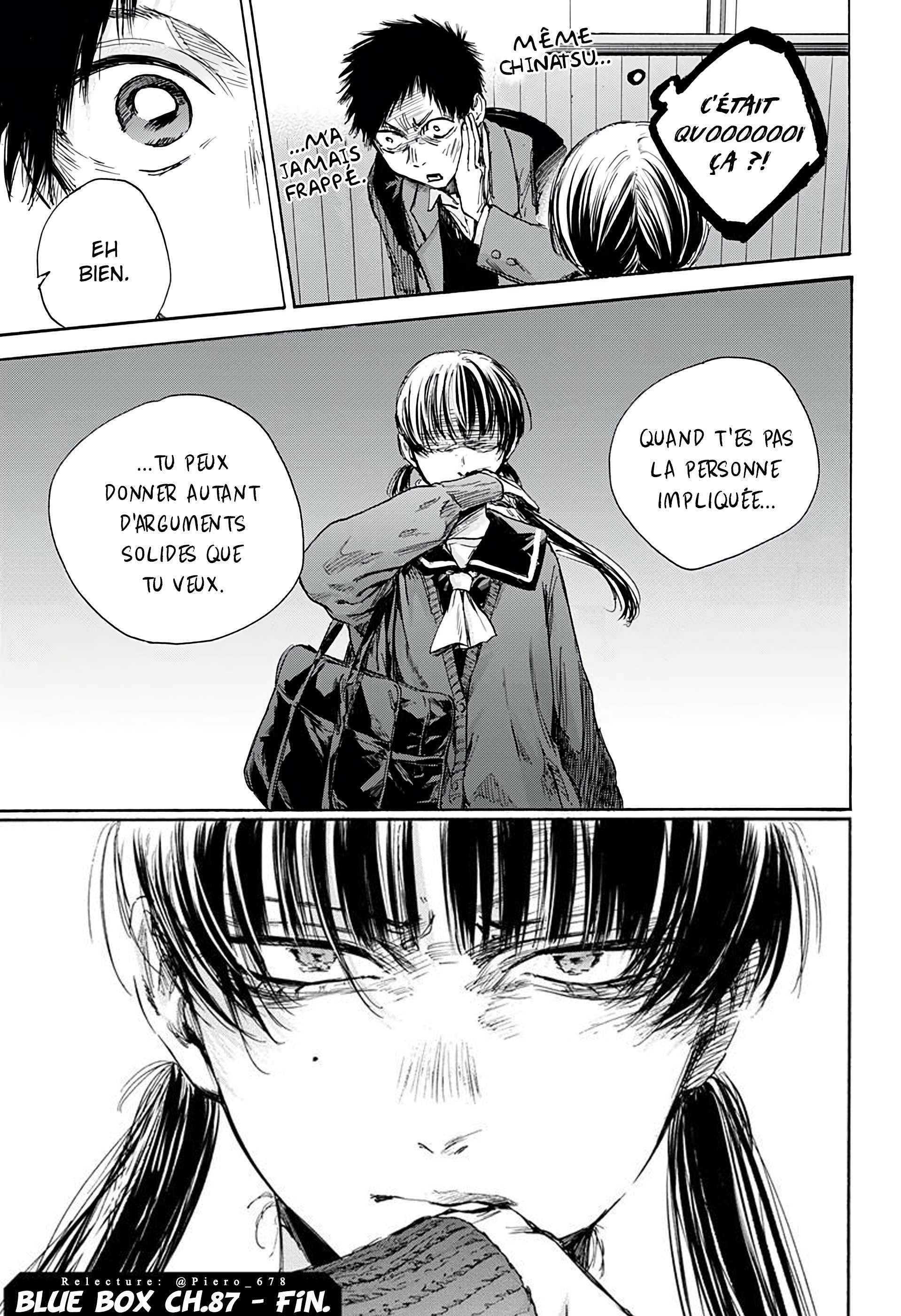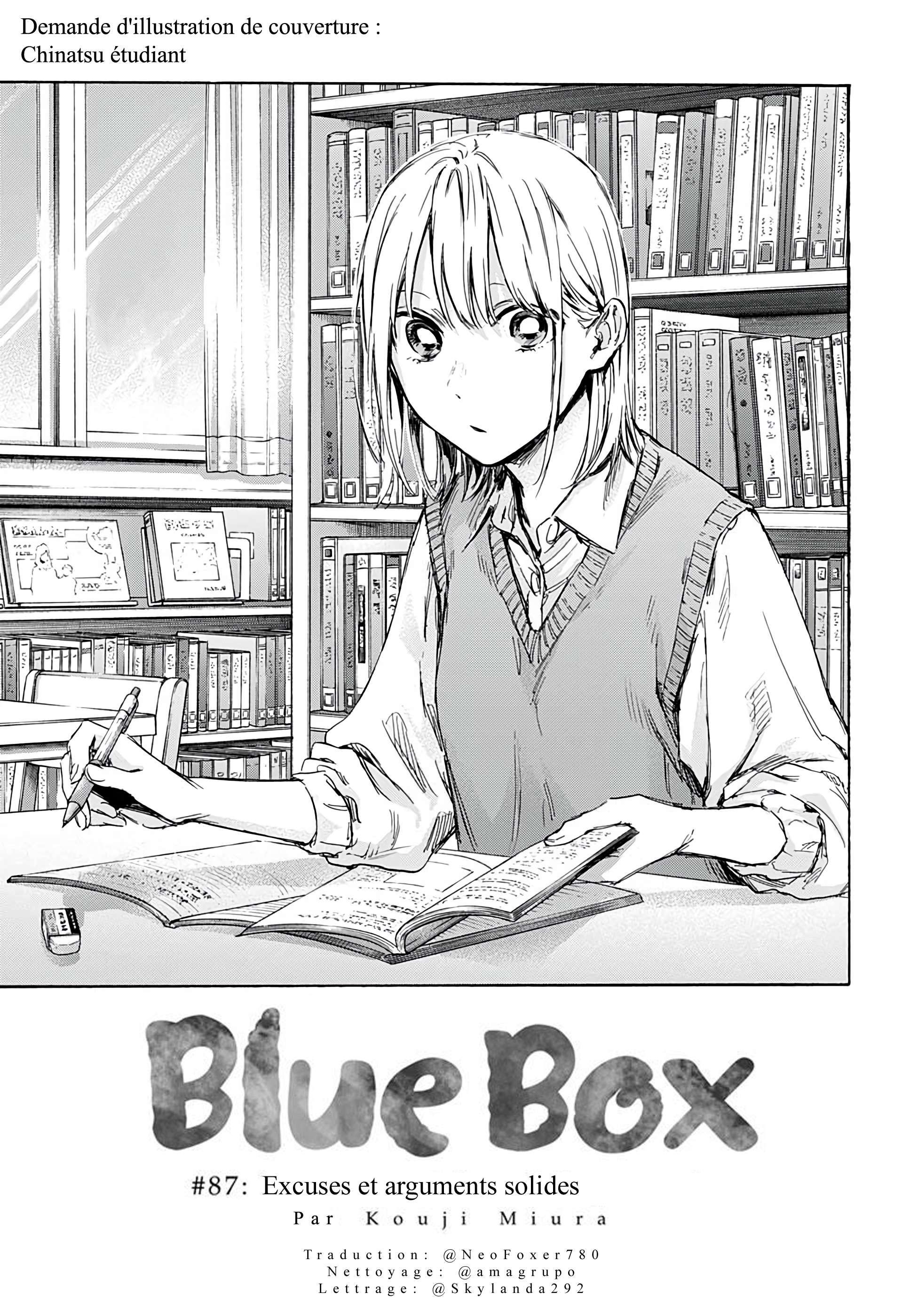 Lisez le dernier manga Blue Box Chapitre 87 VF sur SushiScan. Le manga Blue Box est toujours mis à jour sur SushiScan. N'oubliez pas de lire les autres mises à jour de manga. Une liste de collections de manga SushiScan se trouve dans le menu Liste de manga.