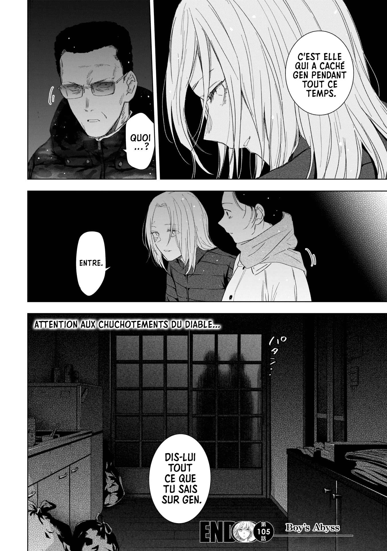 Lisez le dernier manga Boy’s Abyss Chapitre 105 VF sur SushiScan. Le manga Boy’s Abyss est toujours mis à jour sur SushiScan. N'oubliez pas de lire les autres mises à jour de manga. Une liste de collections de manga SushiScan se trouve dans le menu Liste de manga.