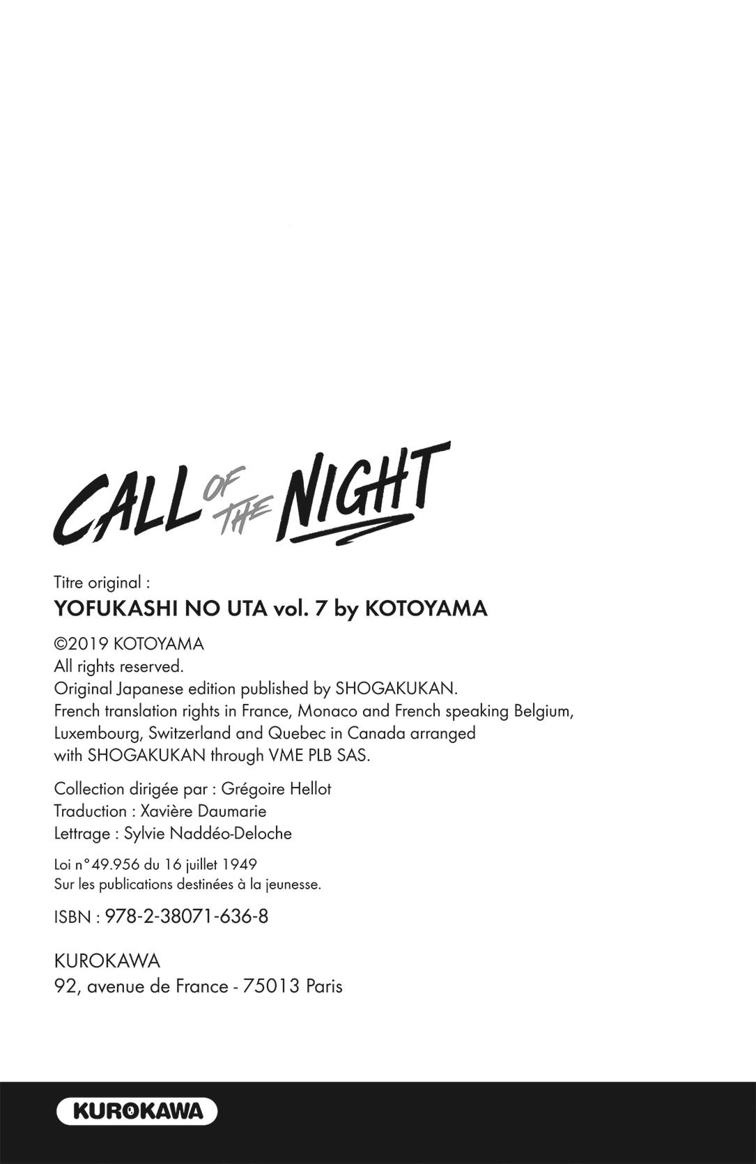 Lisez le dernier manga Call of the Night Volume 7 VF sur SushiScan. Le manga Call of the Night est toujours mis à jour sur SushiScan. N'oubliez pas de lire les autres mises à jour de manga. Une liste de collections de manga SushiScan se trouve dans le menu Liste de manga.