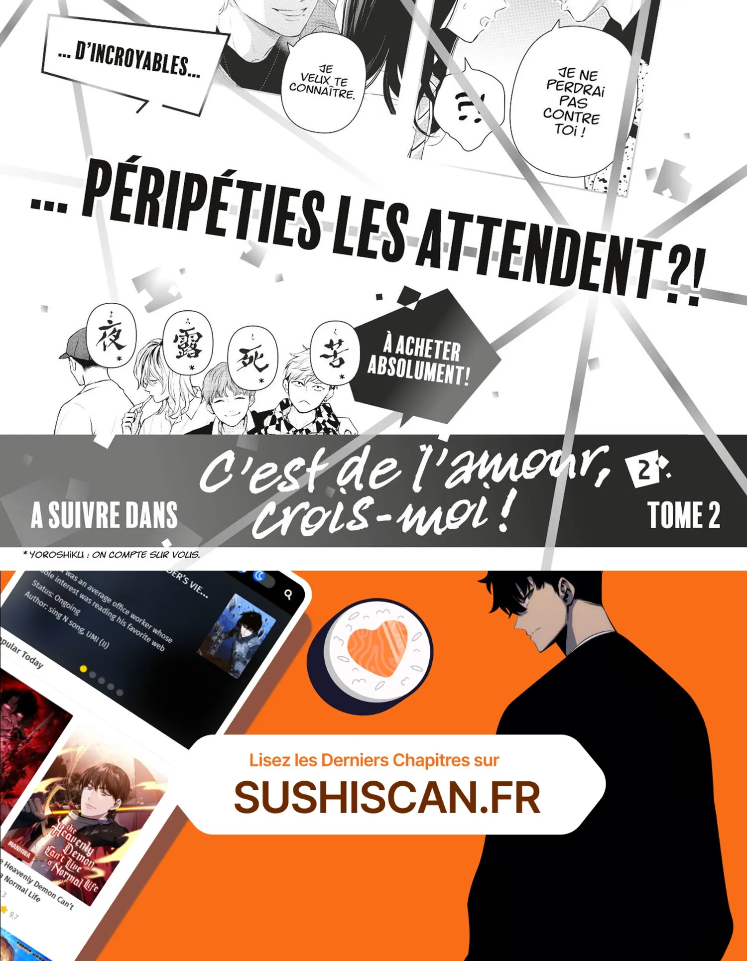 Lisez le dernier manga C’est de l’amour, crois-moi ! Tome 1 sur SushiScan. Le manga C’est de l’amour, crois-moi ! est toujours mis à jour sur SushiScan. N'oubliez pas de lire les autres mises à jour de manga. Une liste de collections de manga SushiScan se trouve dans le menu Liste de manga.