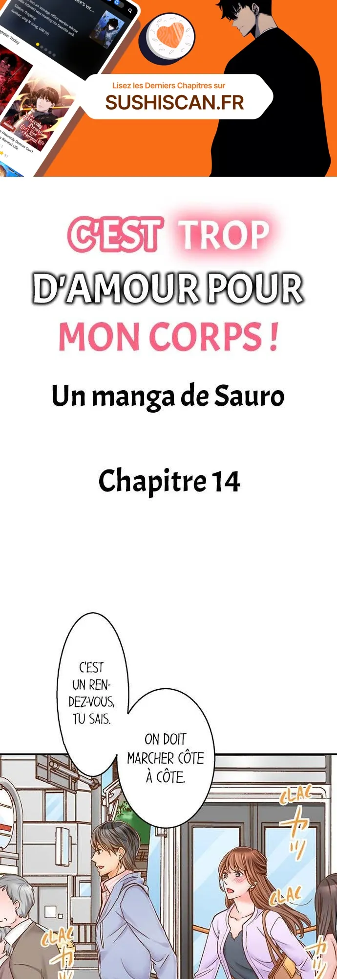 Lisez le dernier manga C’est trop d’amour pour mon corps ! Chapitre 14 sur SushiScan. Le manga C’est trop d’amour pour mon corps ! est toujours mis à jour sur SushiScan. N'oubliez pas de lire les autres mises à jour de manga. Une liste de collections de manga SushiScan se trouve dans le menu Liste de manga.