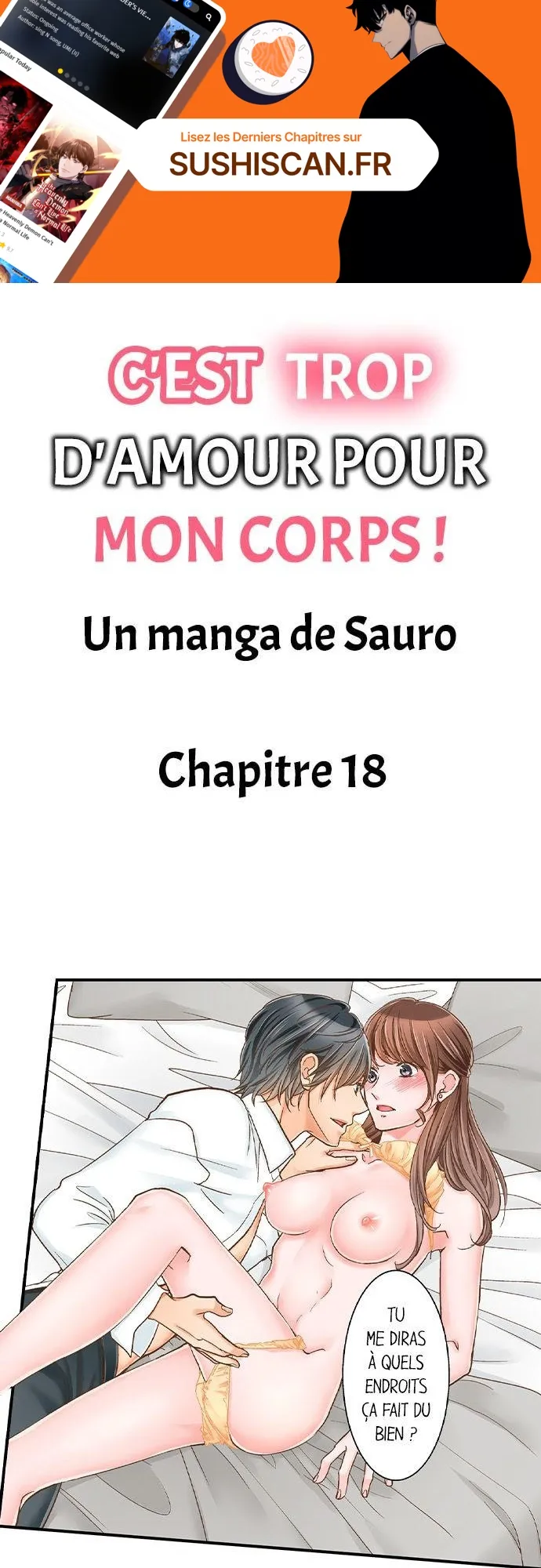 Lisez le dernier manga C’est trop d’amour pour mon corps ! Chapitre 18 sur SushiScan. Le manga C’est trop d’amour pour mon corps ! est toujours mis à jour sur SushiScan. N'oubliez pas de lire les autres mises à jour de manga. Une liste de collections de manga SushiScan se trouve dans le menu Liste de manga.