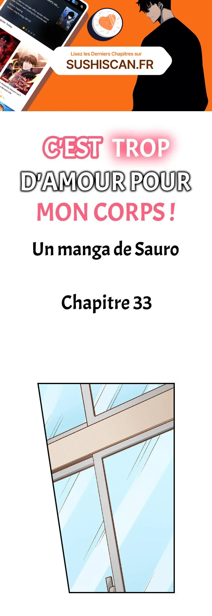 Lisez le dernier manga C’est trop d’amour pour mon corps ! Chapitre 33 sur SushiScan. Le manga C’est trop d’amour pour mon corps ! est toujours mis à jour sur SushiScan. N'oubliez pas de lire les autres mises à jour de manga. Une liste de collections de manga SushiScan se trouve dans le menu Liste de manga.