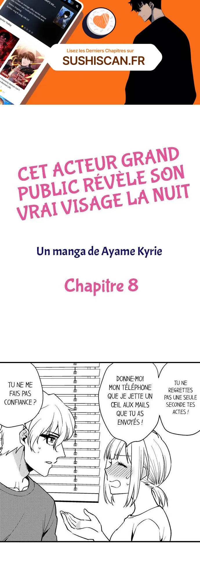 Lisez le dernier manga Cet acteur grand public révèle son vrai visage la nuit Chapitre 8 sur SushiScan. Le manga Cet acteur grand public révèle son vrai visage la nuit est toujours mis à jour sur SushiScan. N'oubliez pas de lire les autres mises à jour de manga. Une liste de collections de manga SushiScan se trouve dans le menu Liste de manga.