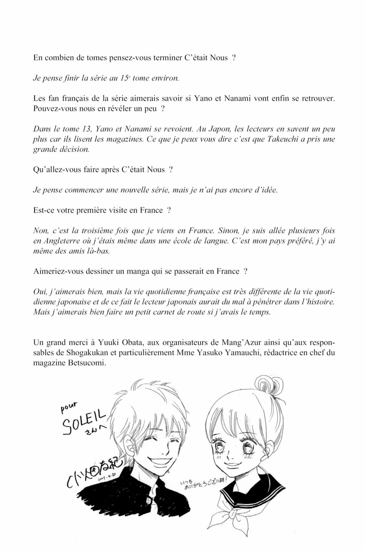 Lisez le dernier manga C’était Nous Tome 1 sur SushiScan. Le manga C’était Nous est toujours mis à jour sur SushiScan. N'oubliez pas de lire les autres mises à jour de manga. Une liste de collections de manga SushiScan se trouve dans le menu Liste de manga.
