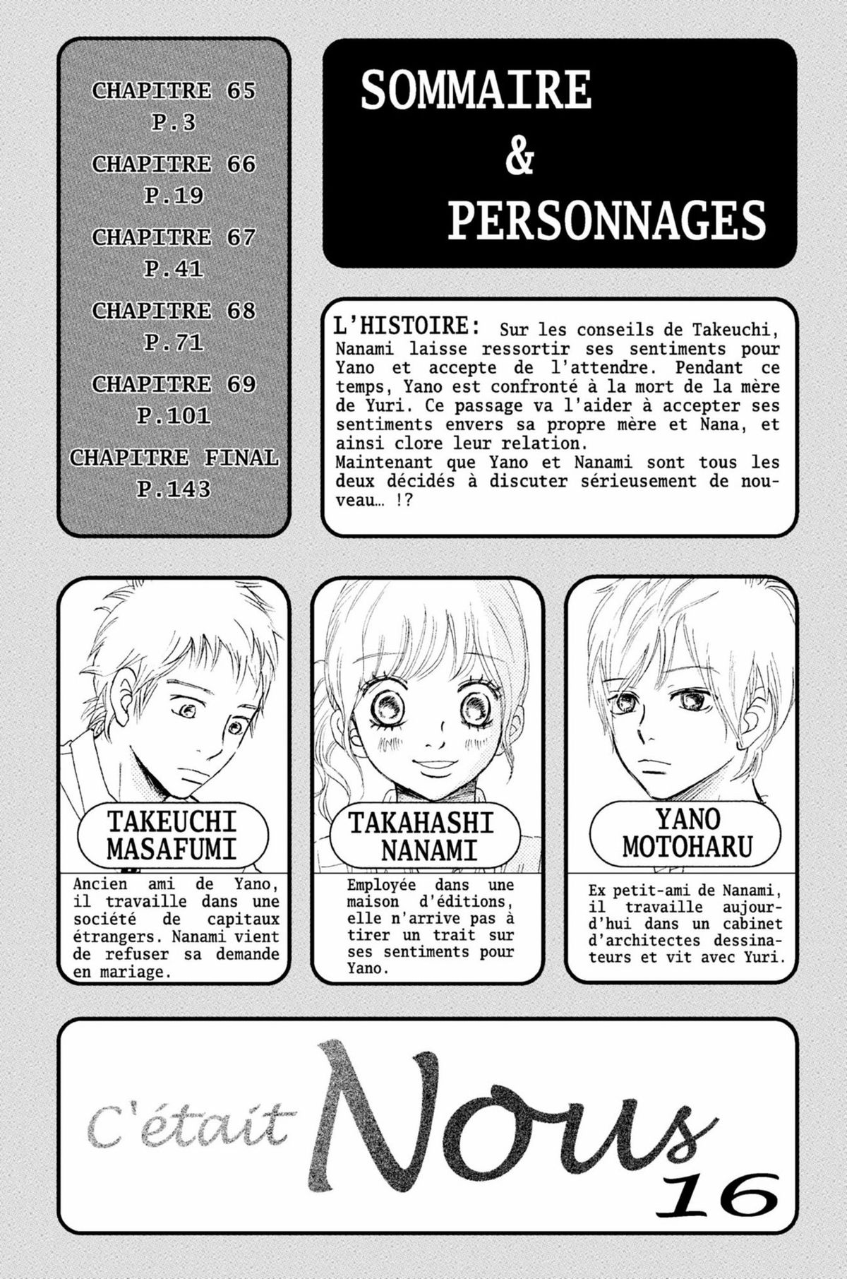 Lisez le dernier manga C’était Nous Tome 16 sur SushiScan. Le manga C’était Nous est toujours mis à jour sur SushiScan. N'oubliez pas de lire les autres mises à jour de manga. Une liste de collections de manga SushiScan se trouve dans le menu Liste de manga.