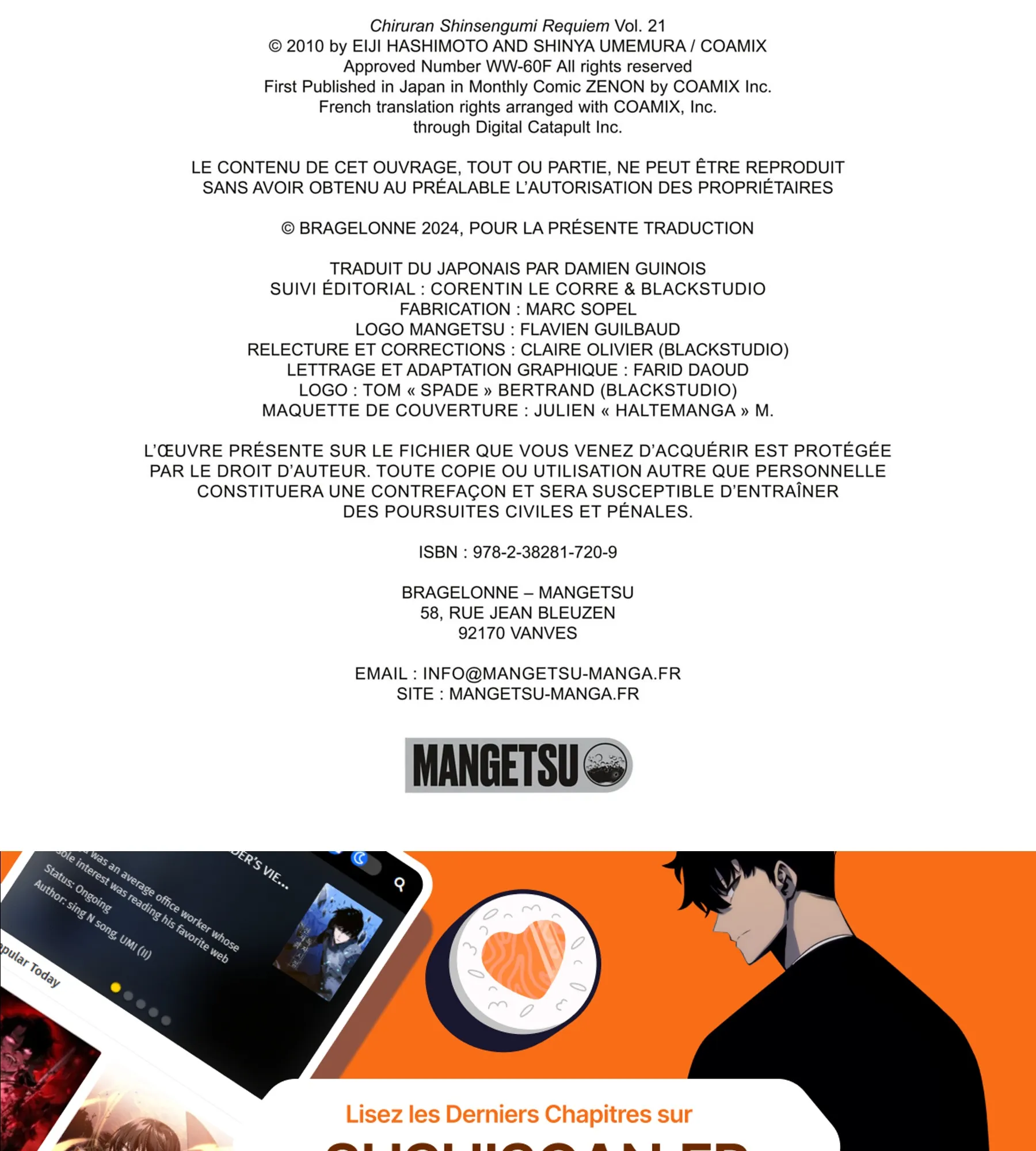 Lisez le dernier manga Chiruran Tome 21 sur SushiScan. Le manga Chiruran est toujours mis à jour sur SushiScan. N'oubliez pas de lire les autres mises à jour de manga. Une liste de collections de manga SushiScan se trouve dans le menu Liste de manga.