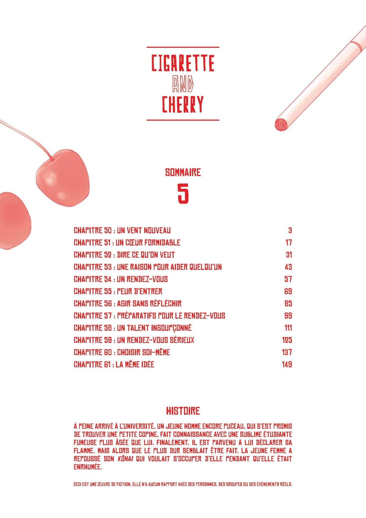 Lisez le dernier manga Cigarette & Cherry Tome 5 sur SushiScan. Le manga Cigarette & Cherry est toujours mis à jour sur SushiScan. N'oubliez pas de lire les autres mises à jour de manga. Une liste de collections de manga SushiScan se trouve dans le menu Liste de manga.