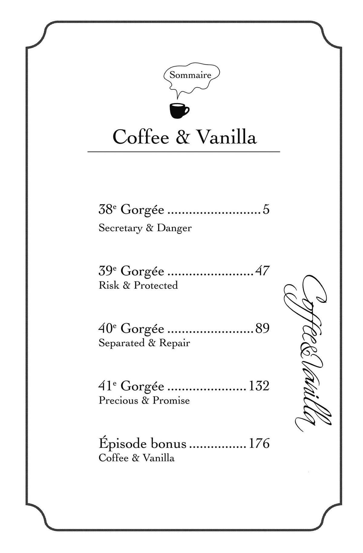 Lisez le dernier manga Coffee & Vanilla Tome 10 sur SushiScan. Le manga Coffee & Vanilla est toujours mis à jour sur SushiScan. N'oubliez pas de lire les autres mises à jour de manga. Une liste de collections de manga SushiScan se trouve dans le menu Liste de manga.