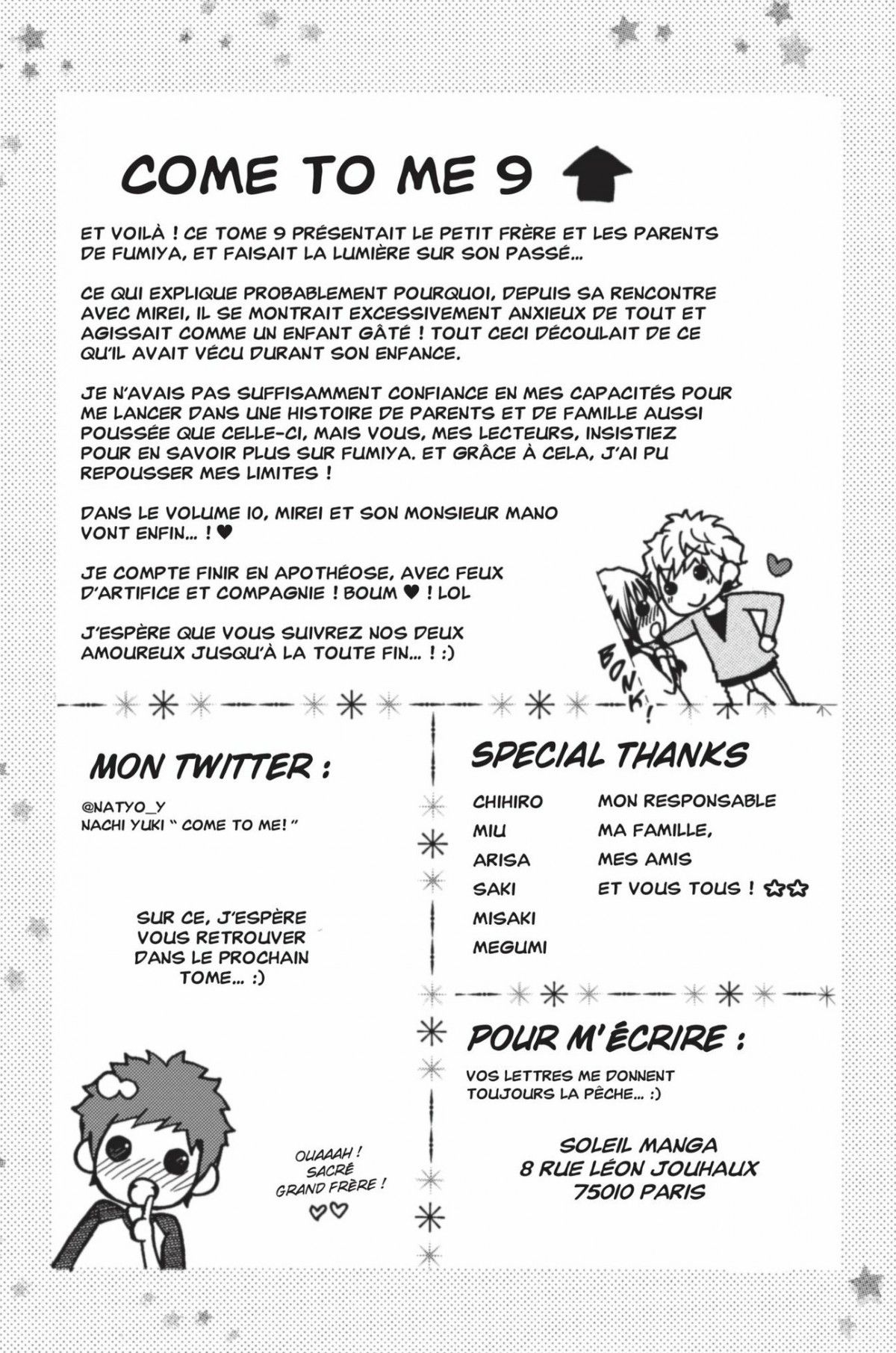 Lisez le dernier manga Come to me Tome 9 sur SushiScan. Le manga Come to me est toujours mis à jour sur SushiScan. N'oubliez pas de lire les autres mises à jour de manga. Une liste de collections de manga SushiScan se trouve dans le menu Liste de manga.