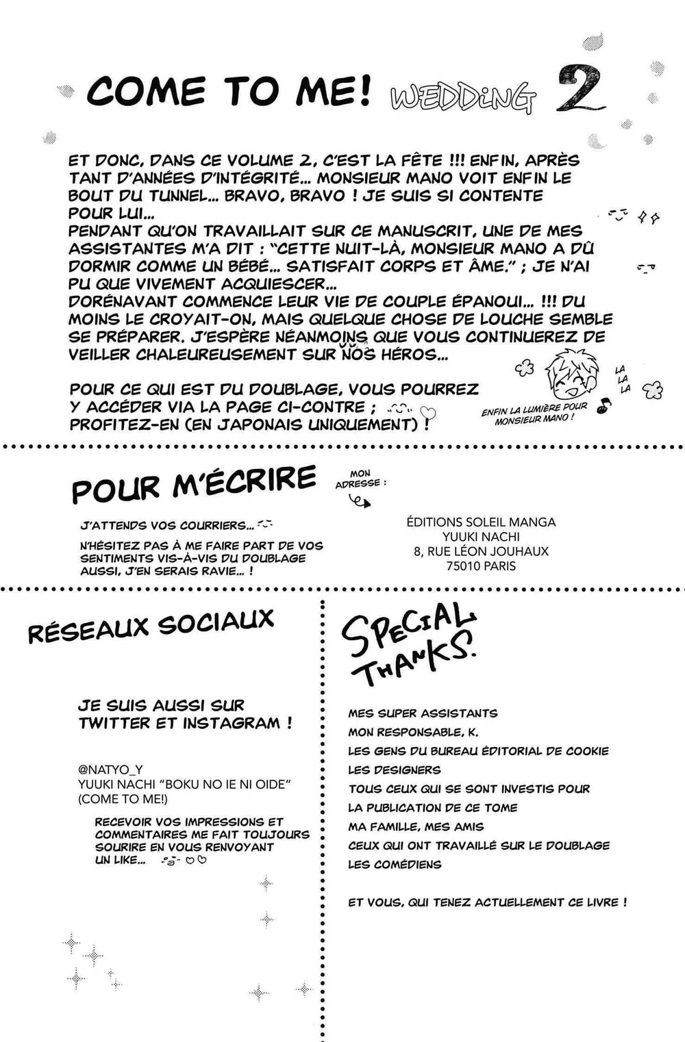 Lisez le dernier manga Come to me – Wedding Tome 2 sur SushiScan. Le manga Come to me – Wedding est toujours mis à jour sur SushiScan. N'oubliez pas de lire les autres mises à jour de manga. Une liste de collections de manga SushiScan se trouve dans le menu Liste de manga.