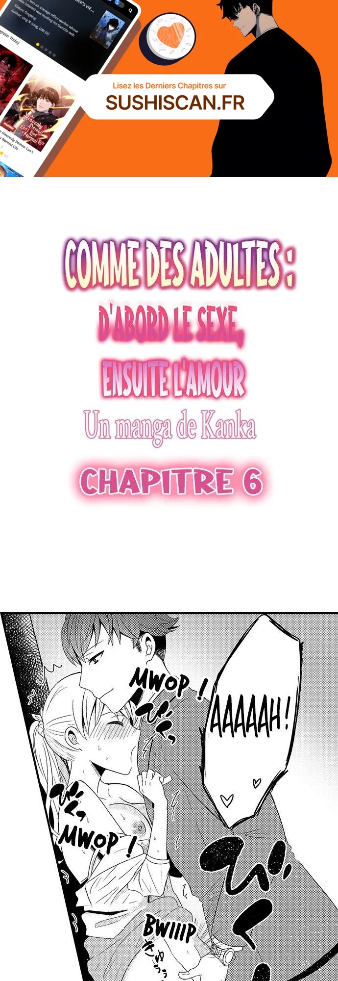 Lisez le dernier manga Comme des adultes : d’abord le sexe, ensuite l’amour Chapitre 6 sur SushiScan. Le manga Comme des adultes : d’abord le sexe, ensuite l’amour est toujours mis à jour sur SushiScan. N'oubliez pas de lire les autres mises à jour de manga. Une liste de collections de manga SushiScan se trouve dans le menu Liste de manga.