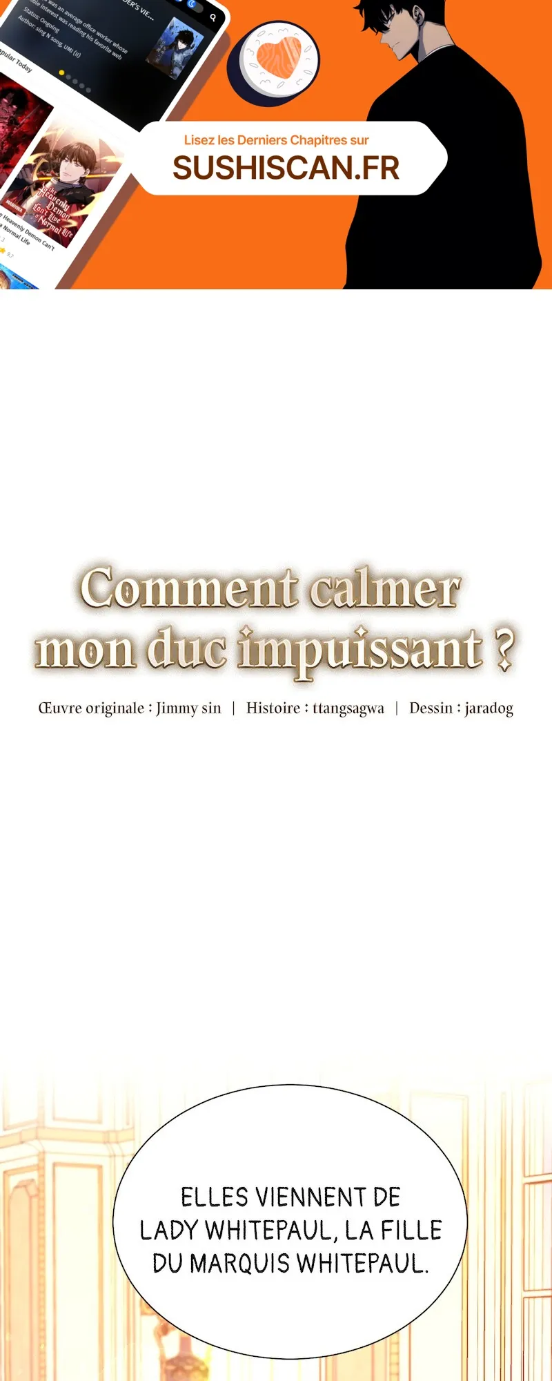 Lisez le dernier manga Comment calmer mon duc impuissant ? Chapitre 58 sur SushiScan. Le manga Comment calmer mon duc impuissant ? est toujours mis à jour sur SushiScan. N'oubliez pas de lire les autres mises à jour de manga. Une liste de collections de manga SushiScan se trouve dans le menu Liste de manga.