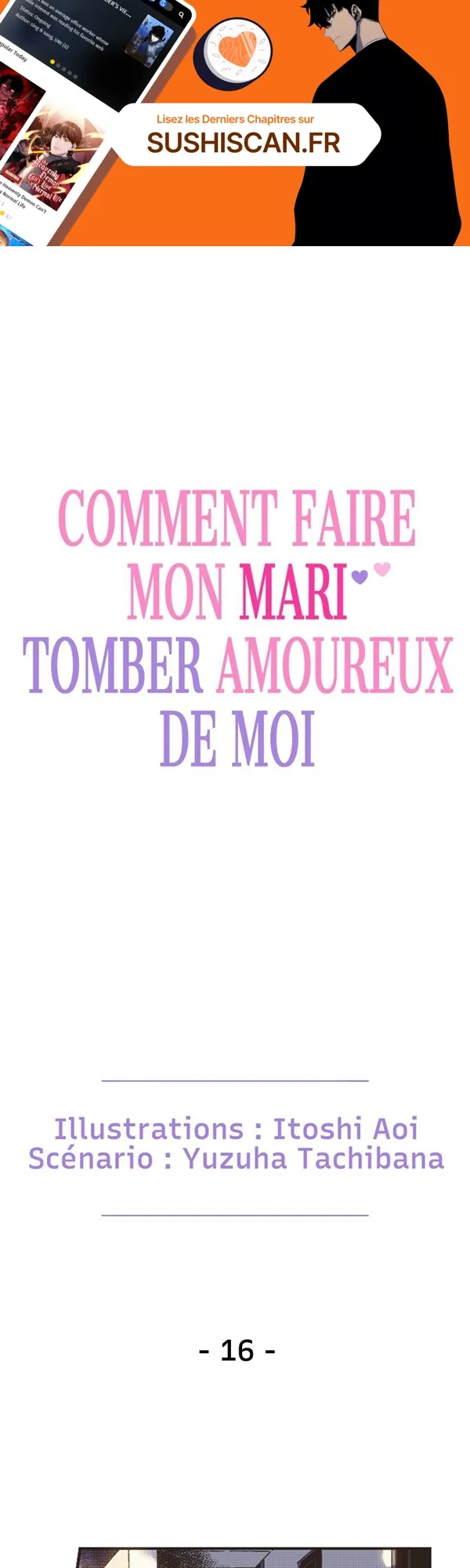 Lisez le dernier manga Comment faire mon mari tomber amoureux de moi Chapitre 16 sur SushiScan. Le manga Comment faire mon mari tomber amoureux de moi est toujours mis à jour sur SushiScan. N'oubliez pas de lire les autres mises à jour de manga. Une liste de collections de manga SushiScan se trouve dans le menu Liste de manga.