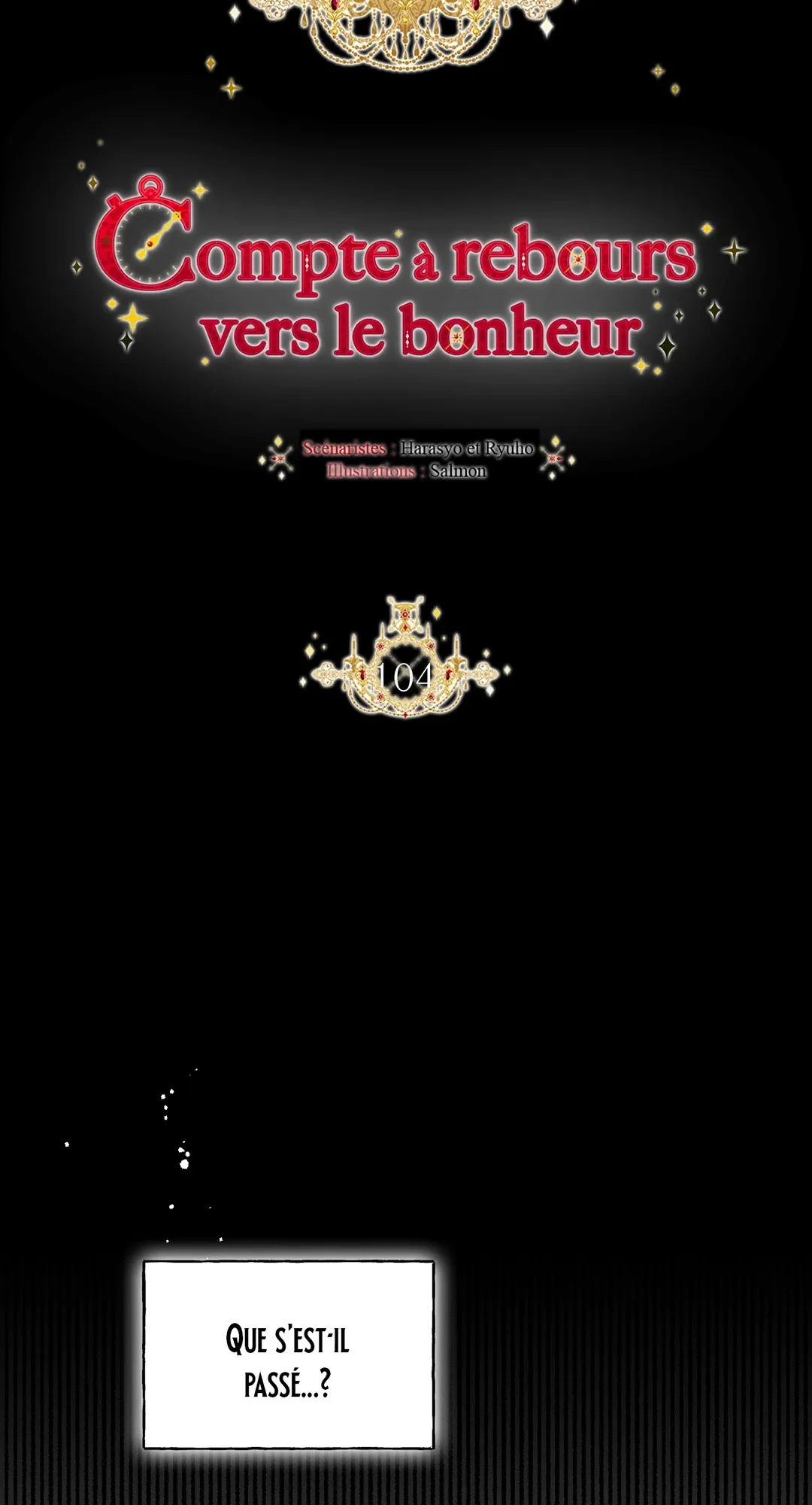 Lisez le dernier manga Compte à rebours vers le bonheur Chapitre 104 sur SushiScan. Le manga Compte à rebours vers le bonheur est toujours mis à jour sur SushiScan. N'oubliez pas de lire les autres mises à jour de manga. Une liste de collections de manga SushiScan se trouve dans le menu Liste de manga.