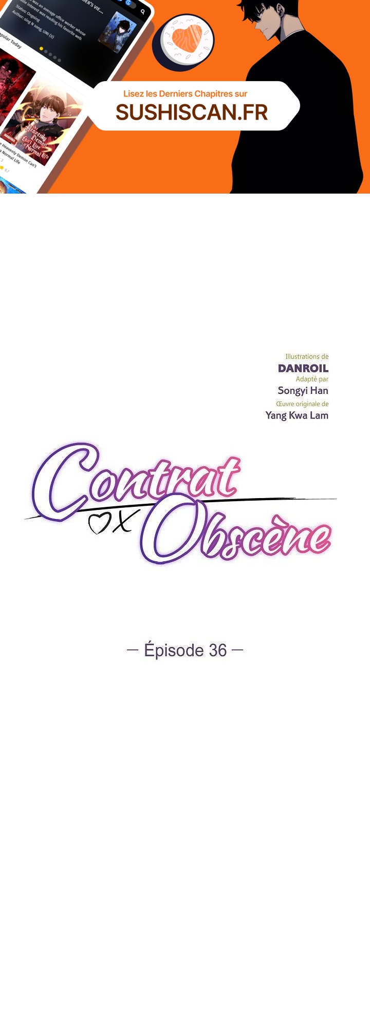 Lisez le dernier manga Contrat Obscène Chapitre 36 sur SushiScan. Le manga Contrat Obscène est toujours mis à jour sur SushiScan. N'oubliez pas de lire les autres mises à jour de manga. Une liste de collections de manga SushiScan se trouve dans le menu Liste de manga.