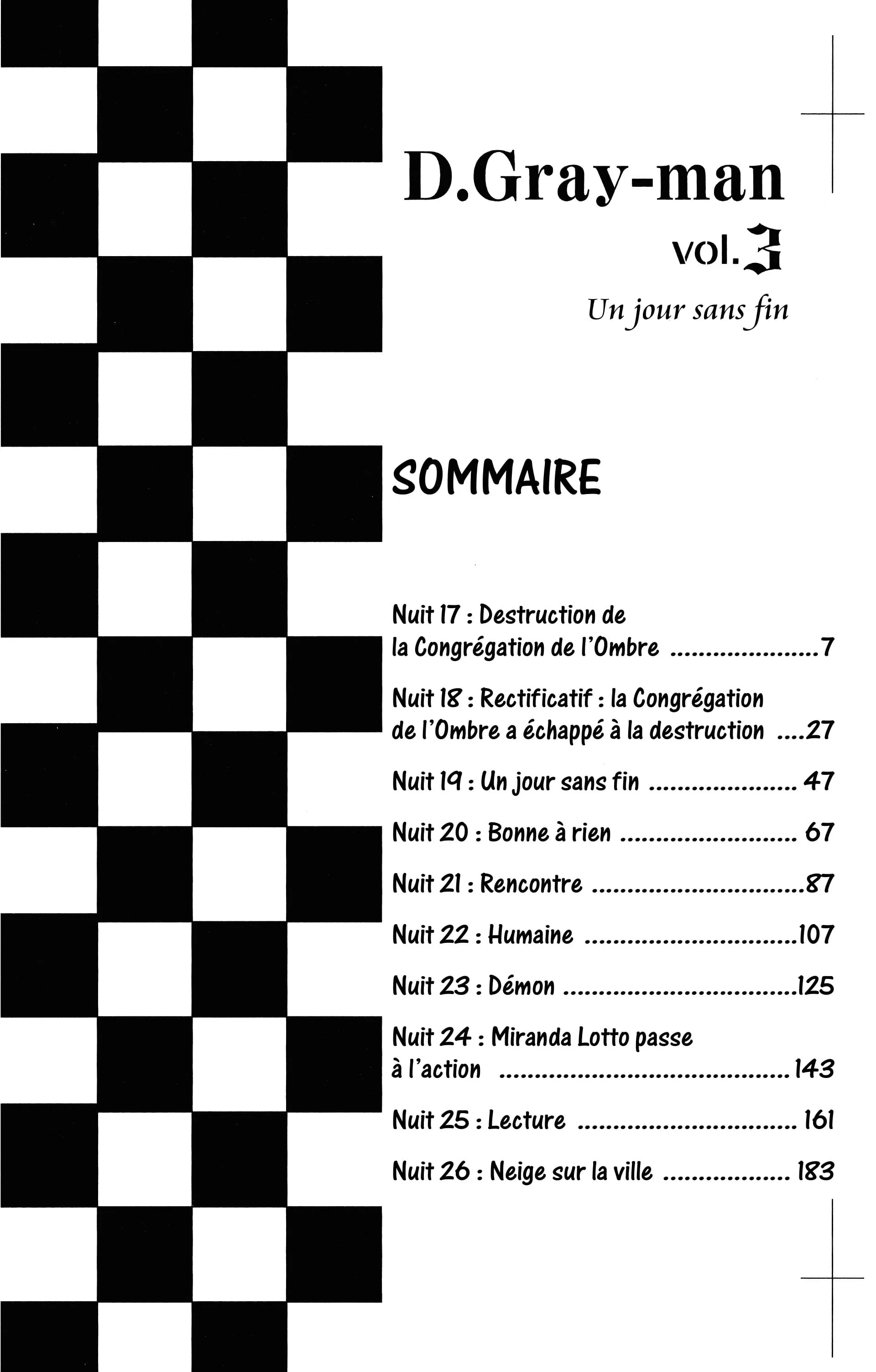 Lisez le dernier manga D.Gray-man Volume 3 sur SushiScan. Le manga D.Gray-man est toujours mis à jour sur SushiScan. N'oubliez pas de lire les autres mises à jour de manga. Une liste de collections de manga SushiScan se trouve dans le menu Liste de manga.