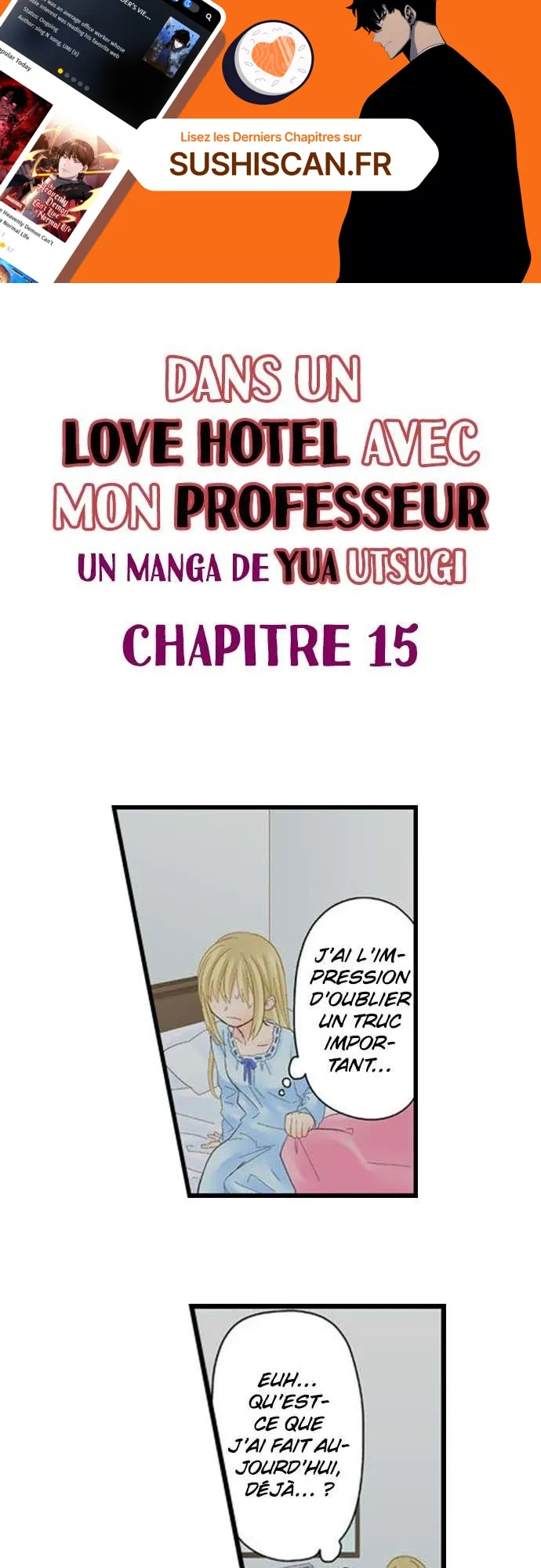 Lisez le dernier manga Dans un Love Hotel avec mon professeur Chapitre 15 sur SushiScan. Le manga Dans un Love Hotel avec mon professeur est toujours mis à jour sur SushiScan. N'oubliez pas de lire les autres mises à jour de manga. Une liste de collections de manga SushiScan se trouve dans le menu Liste de manga.