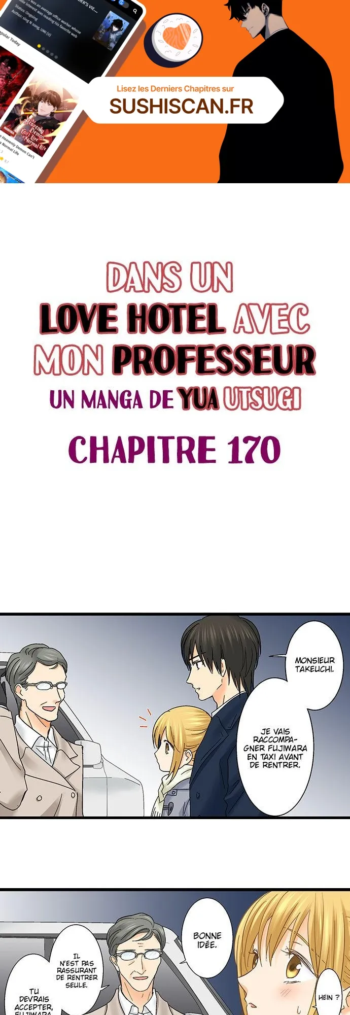 Lisez le dernier manga Dans un Love Hotel avec mon professeur Chapitre 170 sur SushiScan. Le manga Dans un Love Hotel avec mon professeur est toujours mis à jour sur SushiScan. N'oubliez pas de lire les autres mises à jour de manga. Une liste de collections de manga SushiScan se trouve dans le menu Liste de manga.