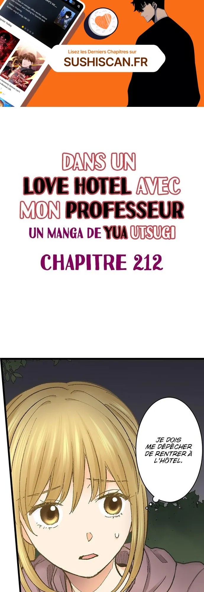 Lisez le dernier manga Dans un Love Hotel avec mon professeur Chapitre 212 sur SushiScan. Le manga Dans un Love Hotel avec mon professeur est toujours mis à jour sur SushiScan. N'oubliez pas de lire les autres mises à jour de manga. Une liste de collections de manga SushiScan se trouve dans le menu Liste de manga.