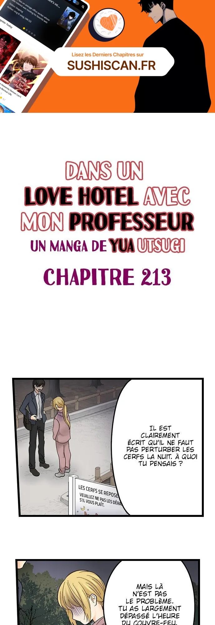 Lisez le dernier manga Dans un Love Hotel avec mon professeur Chapitre 213 sur SushiScan. Le manga Dans un Love Hotel avec mon professeur est toujours mis à jour sur SushiScan. N'oubliez pas de lire les autres mises à jour de manga. Une liste de collections de manga SushiScan se trouve dans le menu Liste de manga.