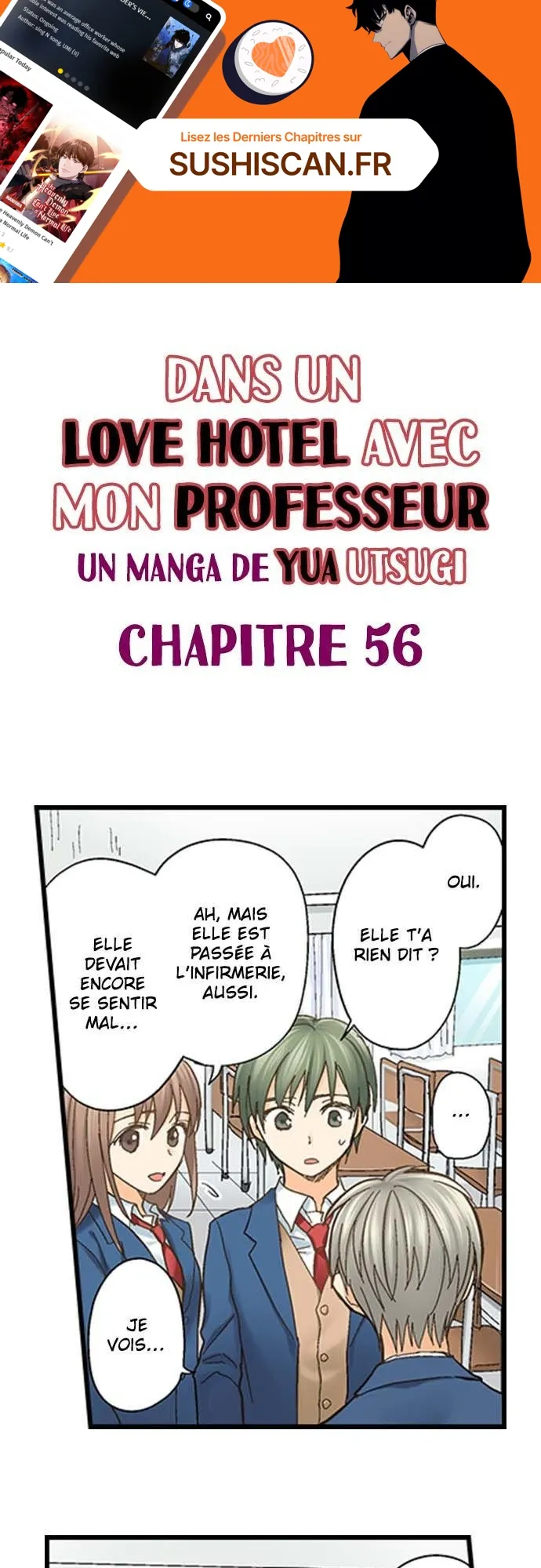 Lisez le dernier manga Dans un Love Hotel avec mon professeur Chapitre 56 sur SushiScan. Le manga Dans un Love Hotel avec mon professeur est toujours mis à jour sur SushiScan. N'oubliez pas de lire les autres mises à jour de manga. Une liste de collections de manga SushiScan se trouve dans le menu Liste de manga.