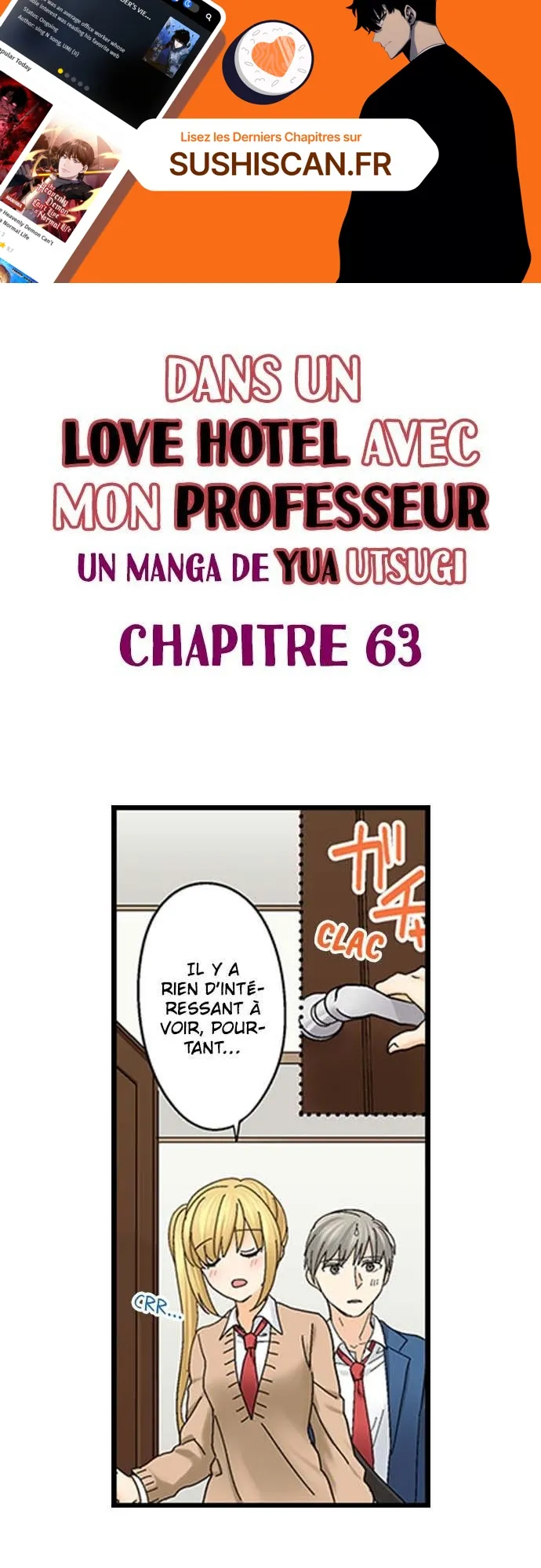 Lisez le dernier manga Dans un Love Hotel avec mon professeur Chapitre 63 sur SushiScan. Le manga Dans un Love Hotel avec mon professeur est toujours mis à jour sur SushiScan. N'oubliez pas de lire les autres mises à jour de manga. Une liste de collections de manga SushiScan se trouve dans le menu Liste de manga.