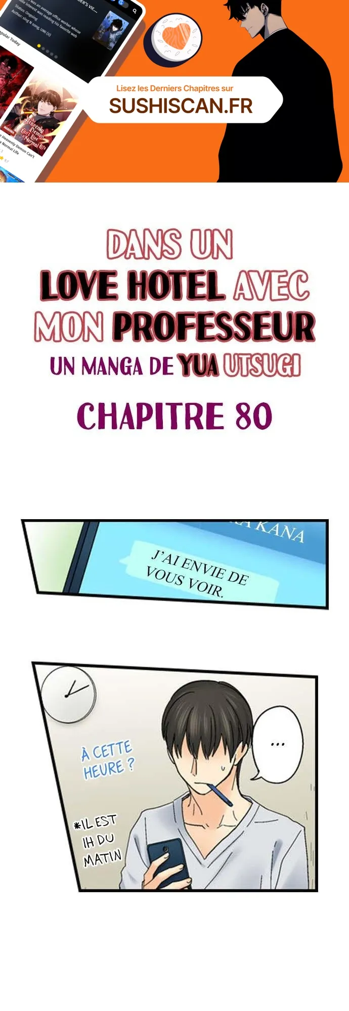 Lisez le dernier manga Dans un Love Hotel avec mon professeur Chapitre 80 sur SushiScan. Le manga Dans un Love Hotel avec mon professeur est toujours mis à jour sur SushiScan. N'oubliez pas de lire les autres mises à jour de manga. Une liste de collections de manga SushiScan se trouve dans le menu Liste de manga.