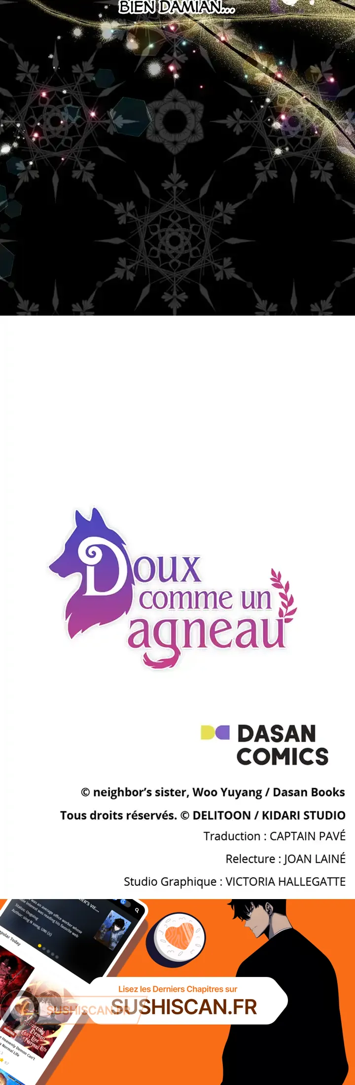 Lisez le dernier manga Doux comme un agneau Chapitre 63 sur SushiScan. Le manga Doux comme un agneau est toujours mis à jour sur SushiScan. N'oubliez pas de lire les autres mises à jour de manga. Une liste de collections de manga SushiScan se trouve dans le menu Liste de manga.