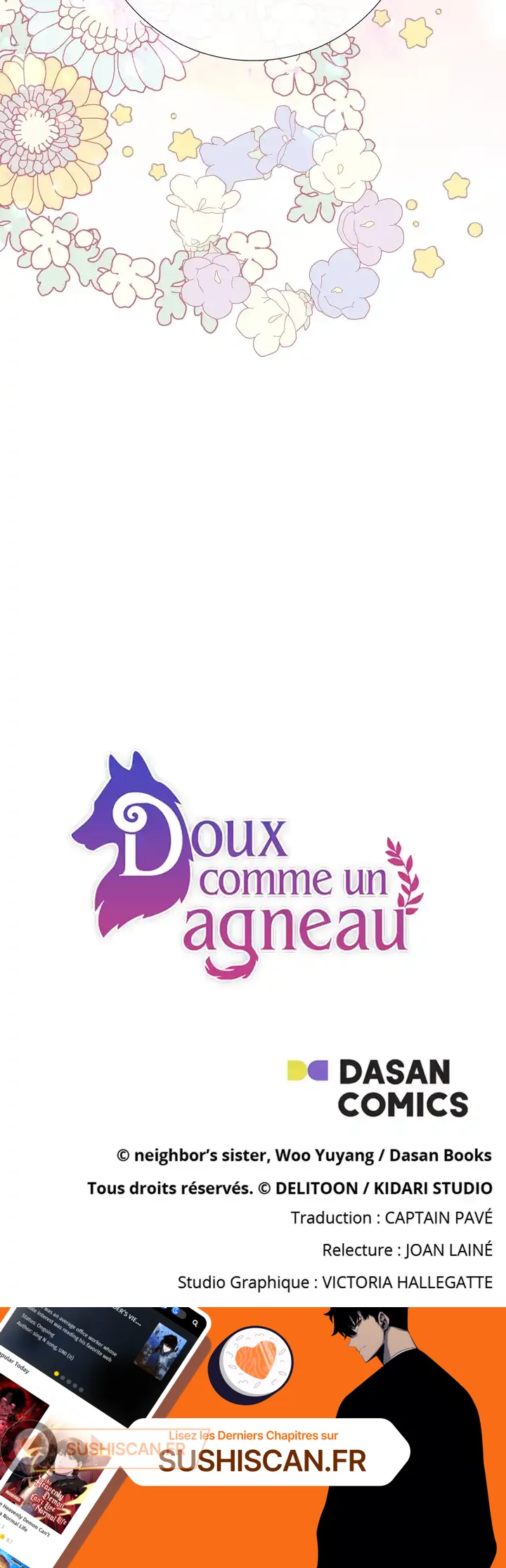 Lisez le dernier manga Doux comme un agneau Chapitre 74 sur SushiScan. Le manga Doux comme un agneau est toujours mis à jour sur SushiScan. N'oubliez pas de lire les autres mises à jour de manga. Une liste de collections de manga SushiScan se trouve dans le menu Liste de manga.