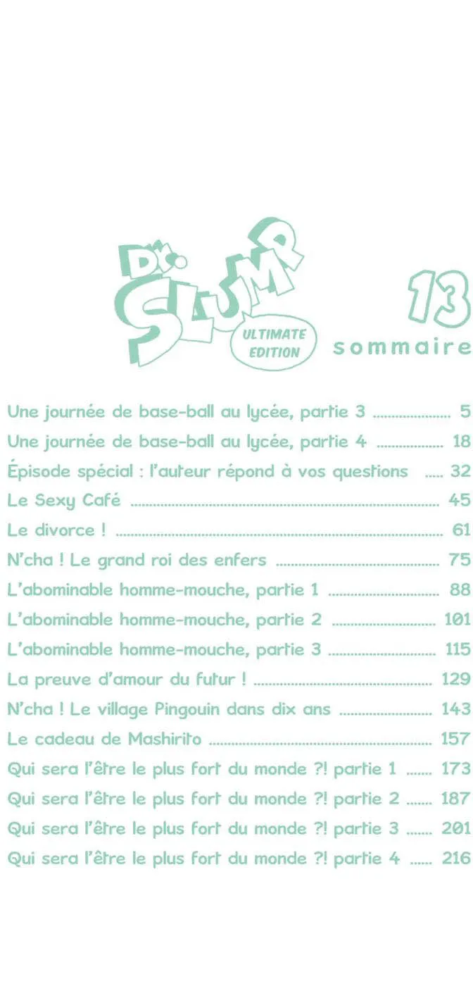 Lisez le dernier manga Dr Slump – Ultimate Edition Tome 13 sur SushiScan. Le manga Dr Slump – Ultimate Edition est toujours mis à jour sur SushiScan. N'oubliez pas de lire les autres mises à jour de manga. Une liste de collections de manga SushiScan se trouve dans le menu Liste de manga.