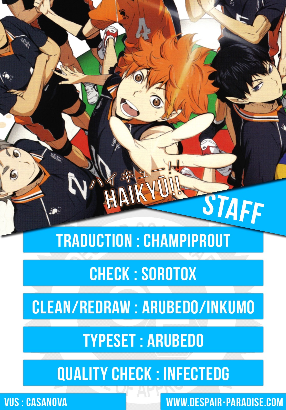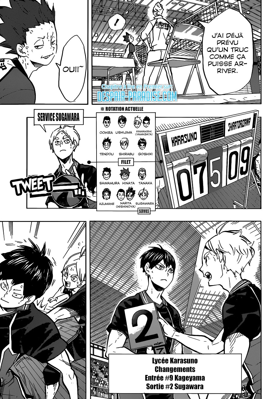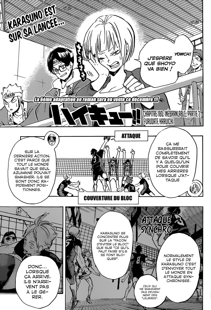 Lisez le dernier manga Haikyu Chapitre 180 VF sur SushiScan. Le manga Haikyu est toujours mis à jour sur SushiScan. N'oubliez pas de lire les autres mises à jour de manga. Une liste de collections de manga SushiScan se trouve dans le menu Liste de manga.
