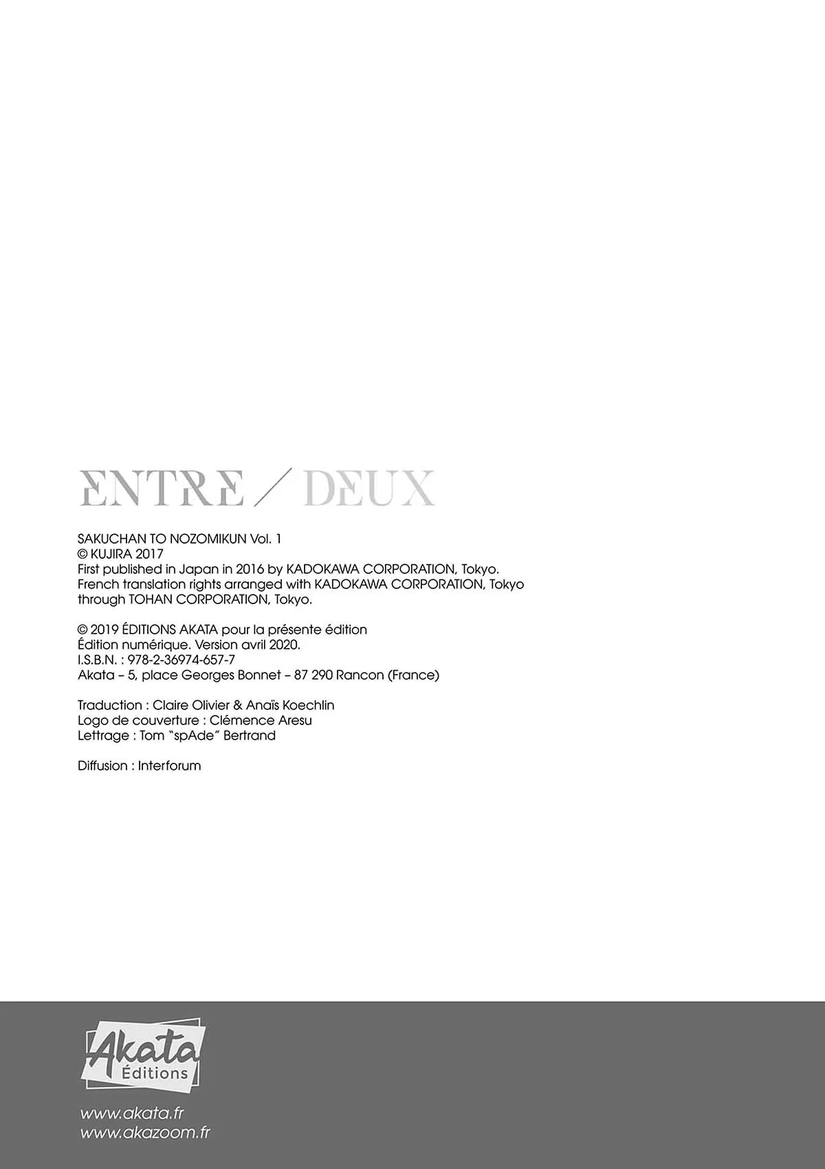 Lisez le dernier manga Entre/Deux Tome 1 sur SushiScan. Le manga Entre/Deux est toujours mis à jour sur SushiScan. N'oubliez pas de lire les autres mises à jour de manga. Une liste de collections de manga SushiScan se trouve dans le menu Liste de manga.